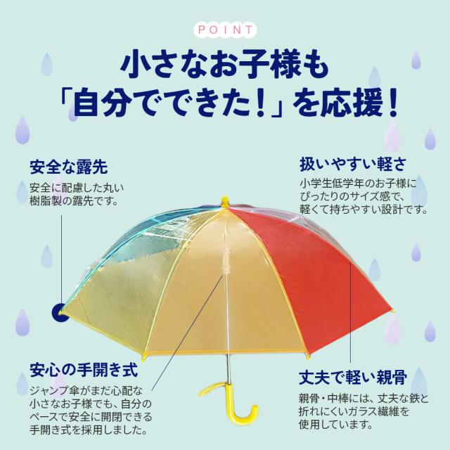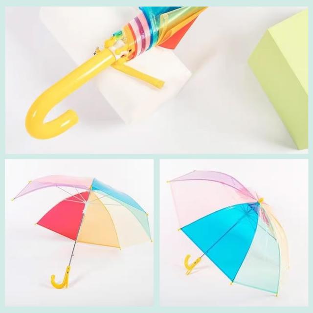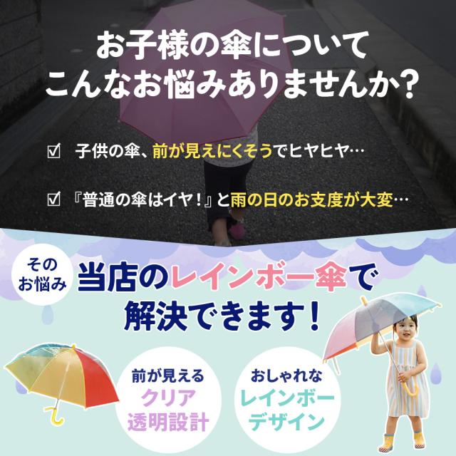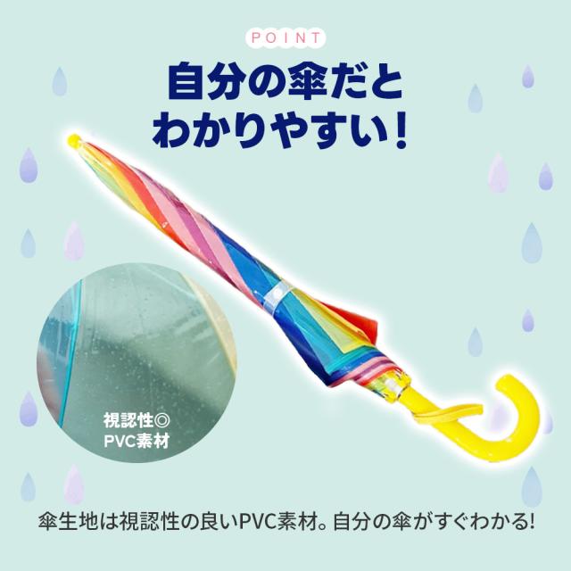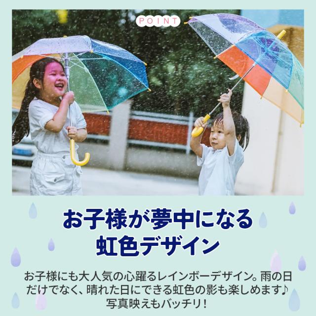 レインボー傘 キッズ 子供 傘 透明 安全 レインボー キッズ 男の子 女の子 小学生 幼稚園 通園 通学 手開き 軽量 かわいい おしゃれ PVC 親骨49cm 直径80cm