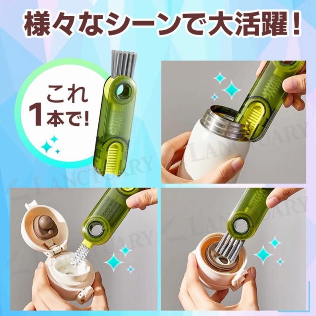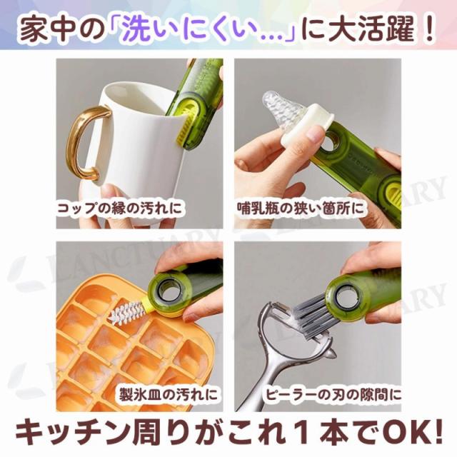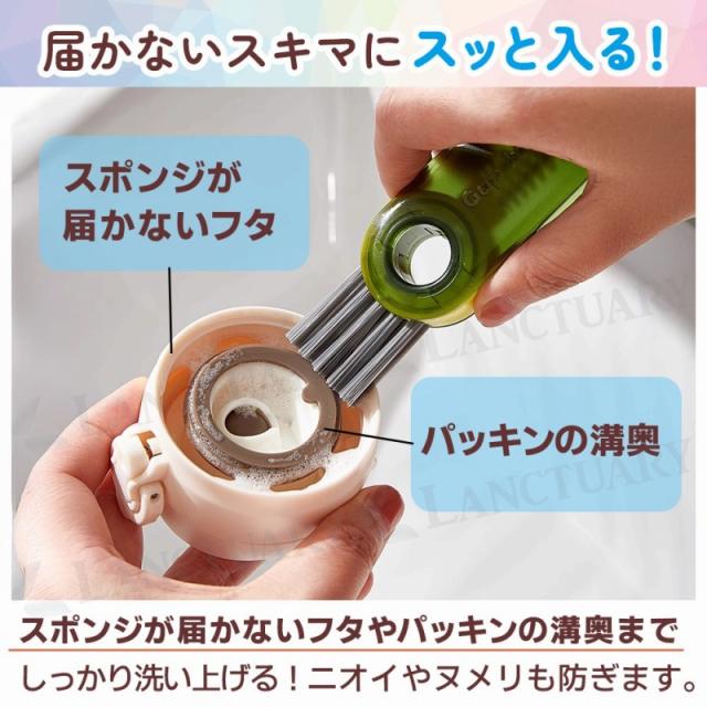 【「洗いにくい」を解決!3WAYお掃除ブラシ】先端の3種ブラシが、フタの溝・本体の口・パーツの隙間などを徹底攻略。
