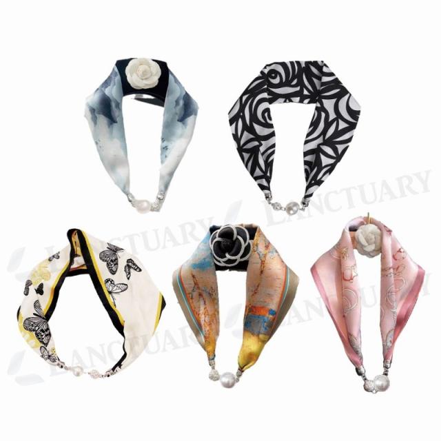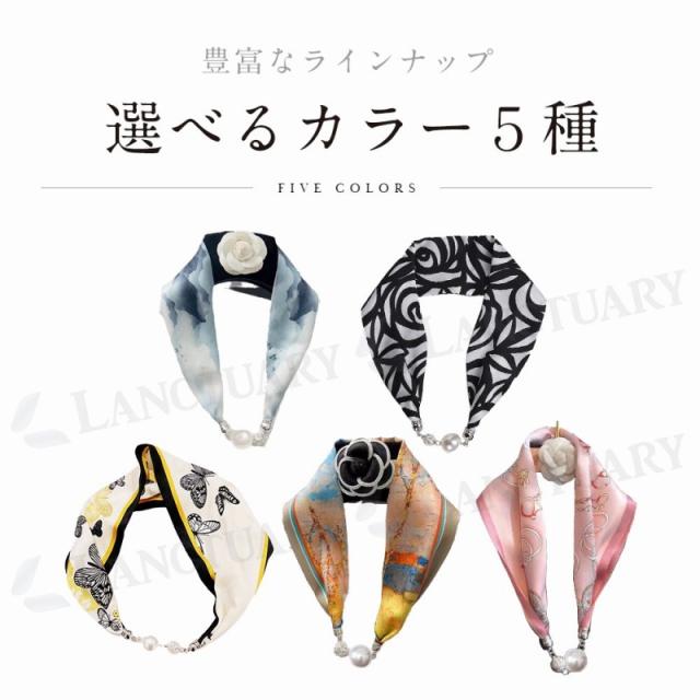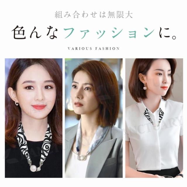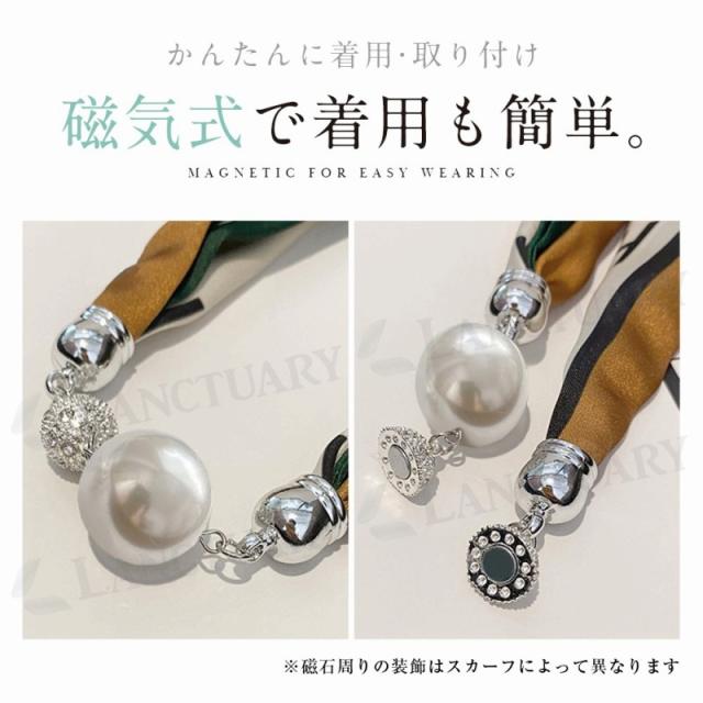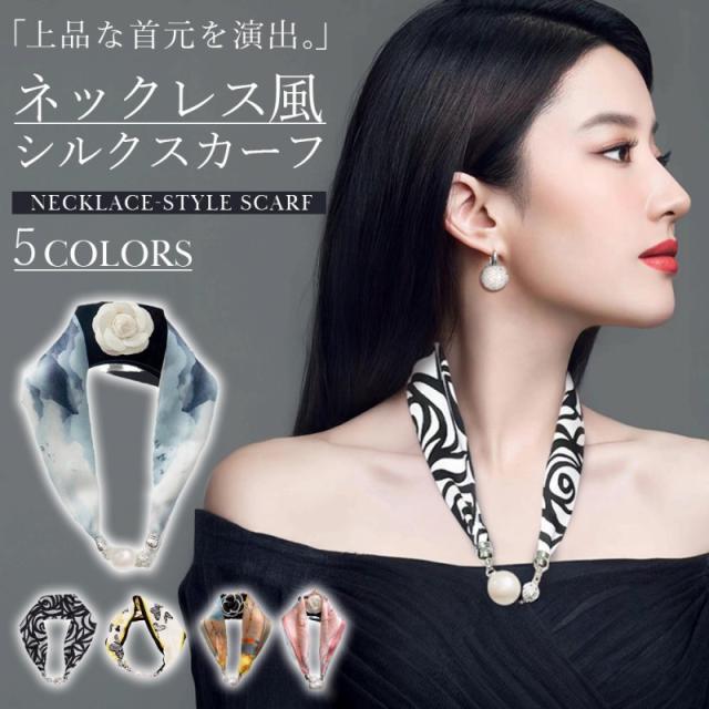 ネックレス風 パール スカーフ シルク ファッション レディース おしゃれ 上品 装飾 ジュエリー 髪飾り 母の日 誕生日 ギフト プレゼント 磁気式 磁気バックル