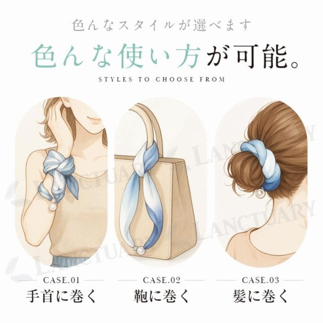 服装だけでなく、鞄の持ち手に結びつけたり、髪飾りとして髪に巻いたりなど様々な使い方が可能です。