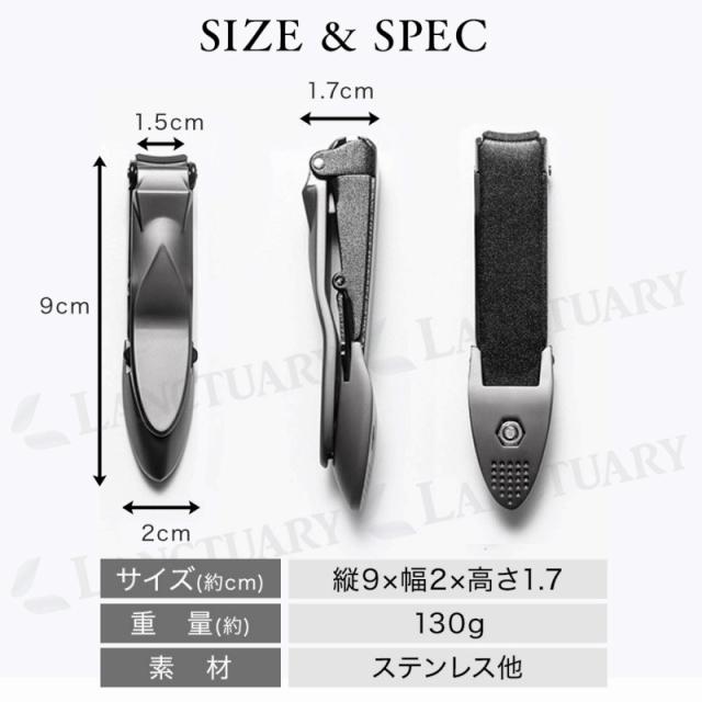 | 商品の説明 | 爪を手軽に、清潔に、そして安全にケアするための革新的なデザイン。 日々の生活に欠かせないアイテムの一つである爪切り。しかし、多くの爪切りは使用後に爪カスが周囲に散乱し、掃除が面倒になることもしばしば。この爪切りは、そんな悩みを解決するために生まれた内蔵ポケットによる爪カスの格納システム。使い終わった後も、周囲を汚すことなく簡単に捨てれて清掃の手間を大幅に削減することができる爪切りになっています。 ステンレス製のボディ。耐久性に優れ、長く愛用でき、一般的な爪切りと比べて、錆びにくい特性を持つ。 表面はメッキ塗装が施されており、見た目にも美しい。デザイン性だけでなく、機能性も兼ね備えた爪切り。安心してお使いいただけると思います。 やすり付きのセットで仕上げにやすりを使用することで、さらに美しい爪に仕上げることができる。爪を切った後のケアも簡単に行え便利です。ギフトとしても喜ばれること間違いなし。大切な人へのプレゼントにも最適。実用的でありながら、デザインにもこだわった商品です。 |
