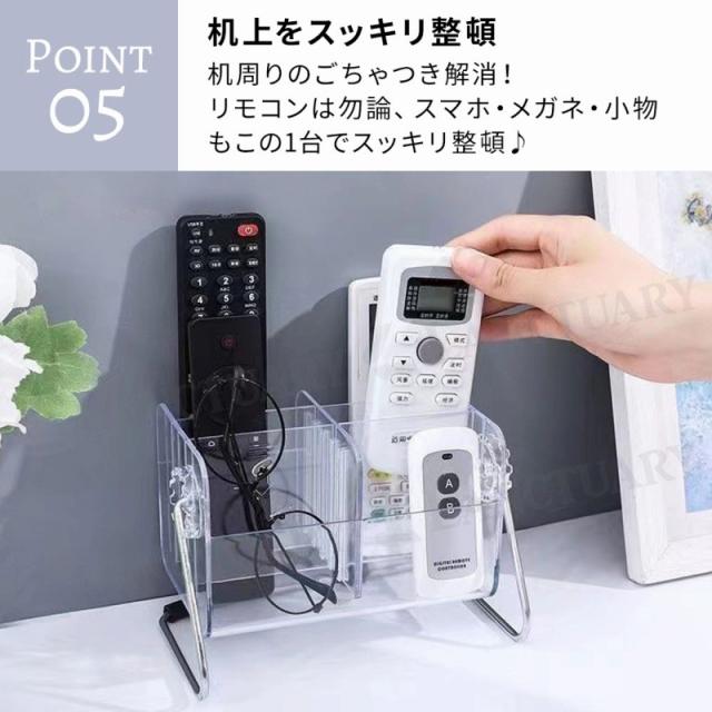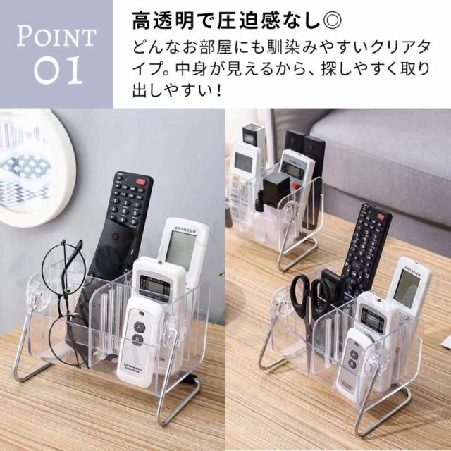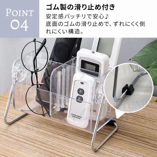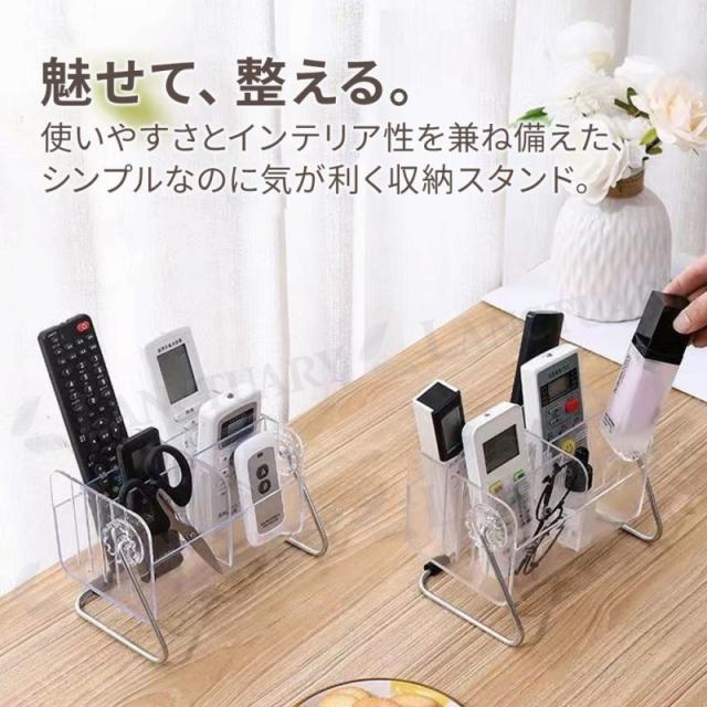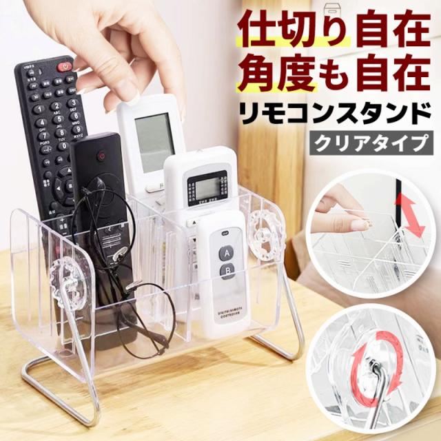 リモコンラック 収納ケース 卓上収納 小物入れ ペン立て メイク収納 デスク整理 多機能スタンド リモコンホルダー スマホ置き メガネ立て 仕切り 調節式 透明