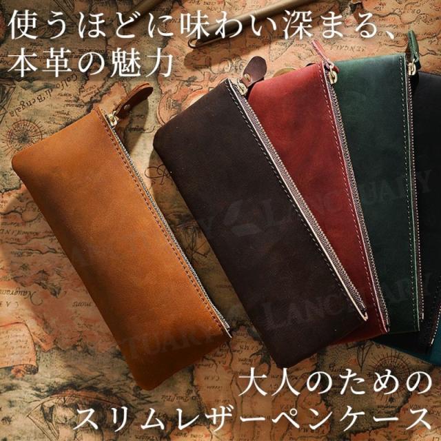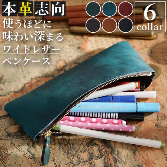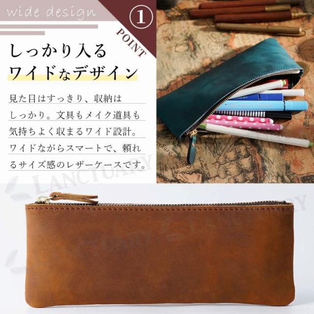 ペンケース レザー 本革 ファスナー オフィス 筆箱 牛革 大容量 ワイド ビジネス ガジェット ポーチ おしゃれ 小さい メンズ レディース プレゼント ギフト
