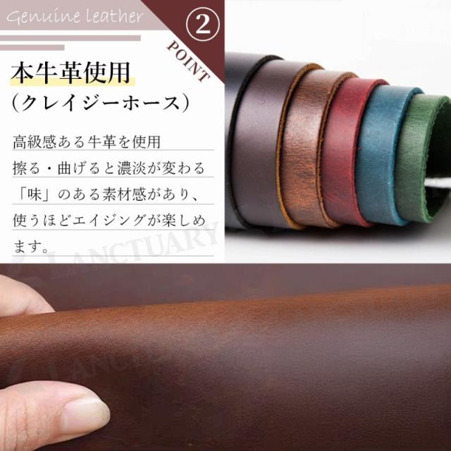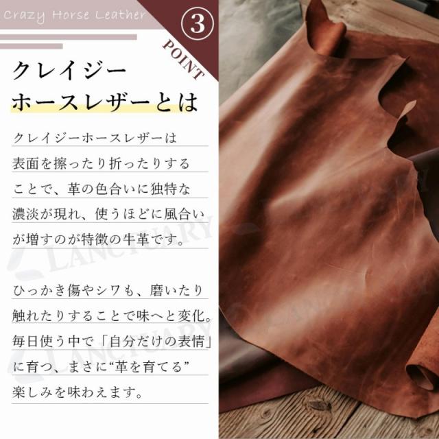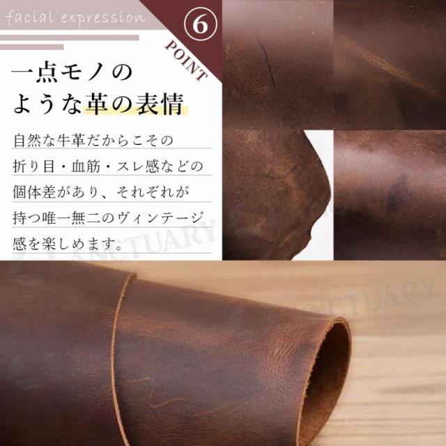 【クレイジーホースレザー(牛革)を使用】擦ったり曲げたりすると色の濃淡が変化します。クレイジーホースレザーは、特殊な加工が施された牛革の一種です。