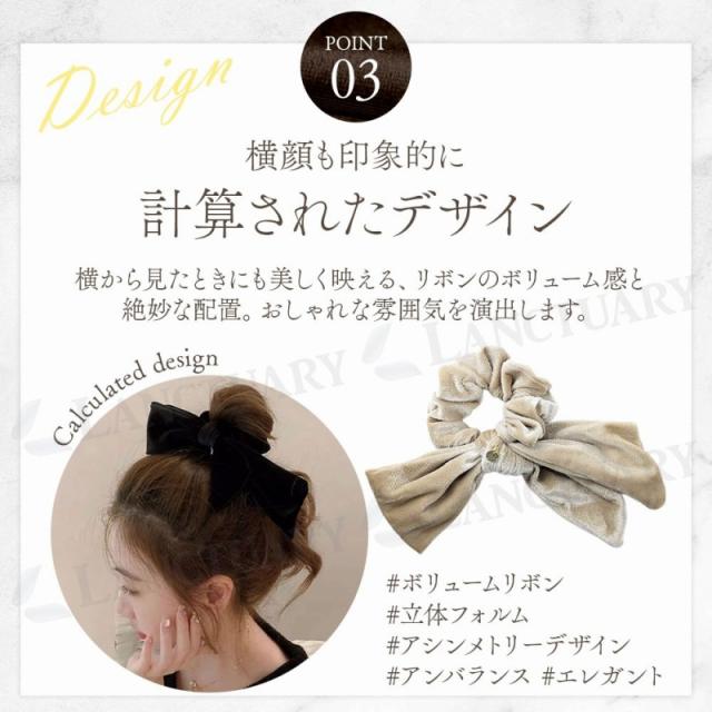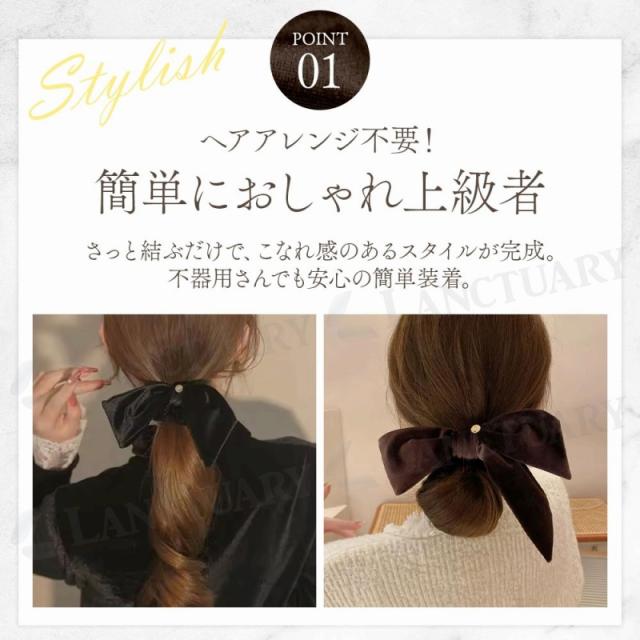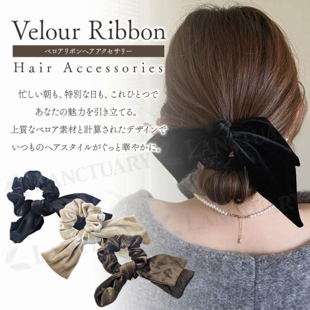 ベロアリボンヘアアクセサリー シュシュ 大きめ リボン ヘアゴム 簡単 ヘアアレンジ まとめ髪 大人女子 上品 高見え おしゃれ トレンド レディース ファッション