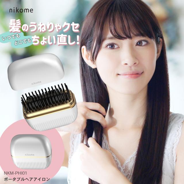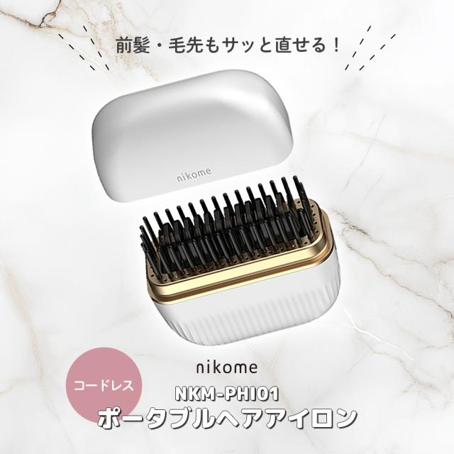 ヘアアイロン ミニ コードレス ヘアーアイロン ポータブル 携帯用 nikome ポータブルヘアアイロン NKM-PHI01 ニコメ 前髪 ストレート ブラシ 軽量 持ち運び コンパクト 出張 旅行先 プレゼント
