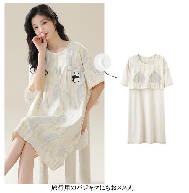 カップ付き ワンピース ルームウェア レディース ロングTシャツワンピース 半袖 パジャマ ブラカップ付き ゆったり 大きいサイズ 半袖 部屋着 寝間着 パジャマ ナイトウェア インナー おしゃれ かわいい 薄手 春 夏 秋 シンプル カジュアル リラックスウェア 送料無料