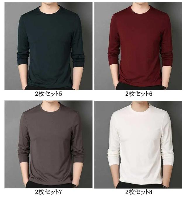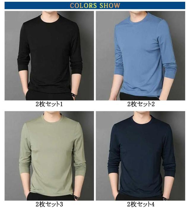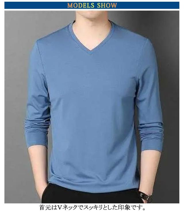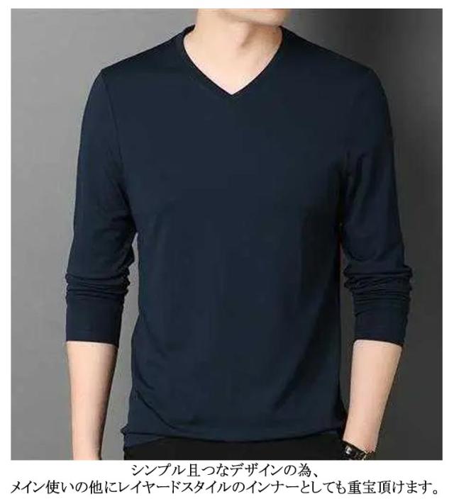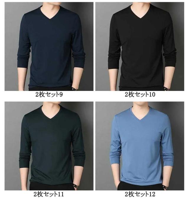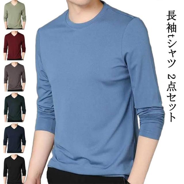 2点セット 長袖tシャツ Vネック スリム 細身 ロンt メンズ 長袖 tシャツ カットソー ロングtシャツ 春 秋 冬 薄手 インナー tシャツ スリムフィット ストレッチ 秋服 秋物 無地 シンプル ビジネス カジュアル 大きいサイズ 黒 白 紺 ネイビー グリーン