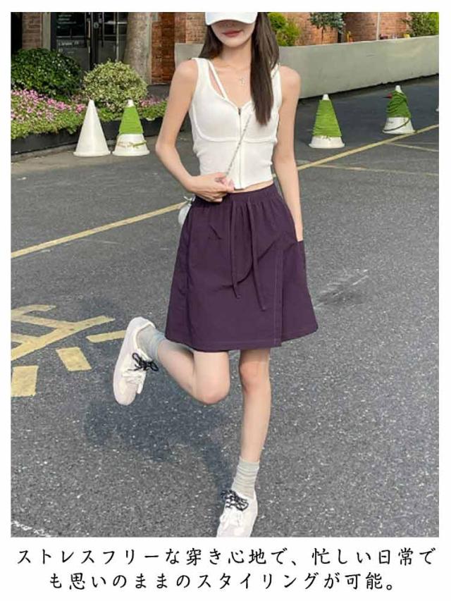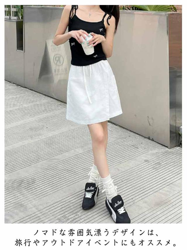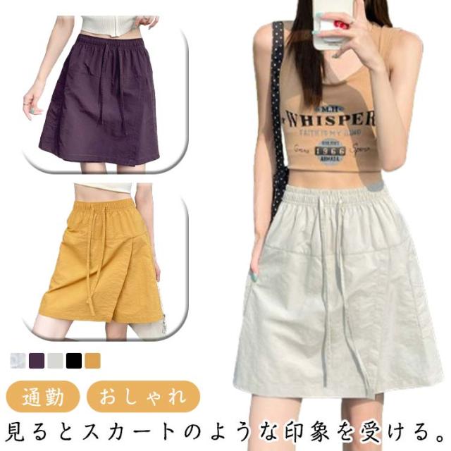 キュロットスカート 夏 レディース ショートパンツ マイクロミニ スカート シンプル カジュアル ウエストゴム 紐付き きれいめ おしゃれ 短パン 春夏 パンツ ショートスカート ポケット付き OL 通勤 旅行 ファッション 送料無料