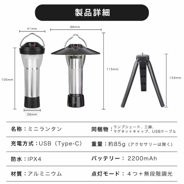 ミニランタン led マイクロランタン 充電式 急速充電 小型ランタン 防水 マグネット シェード 三脚 多機能 調光