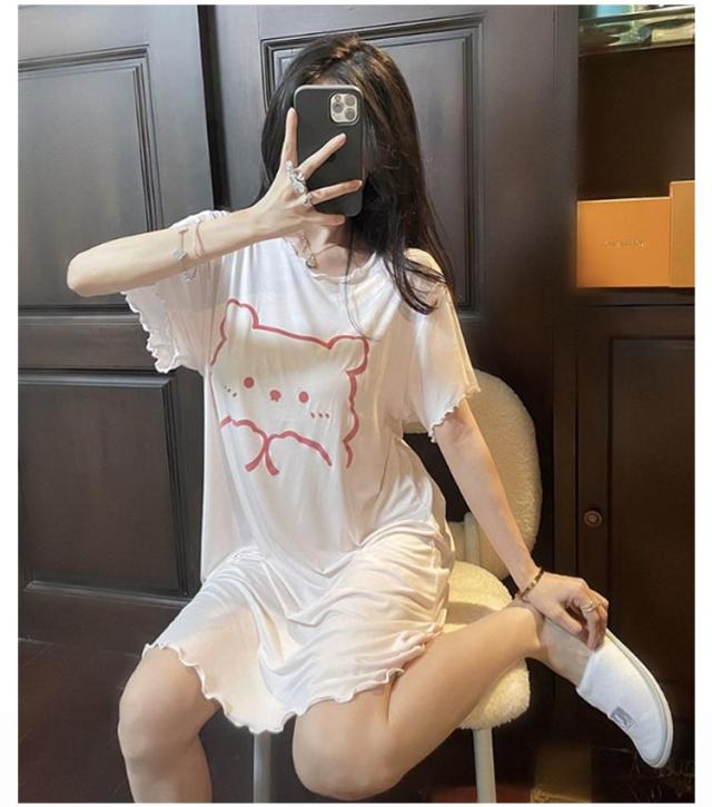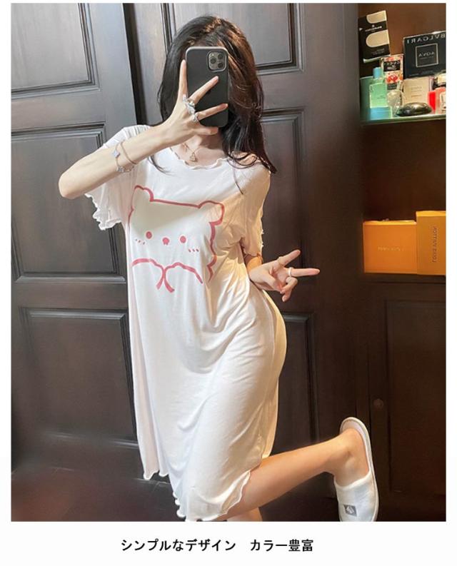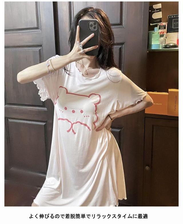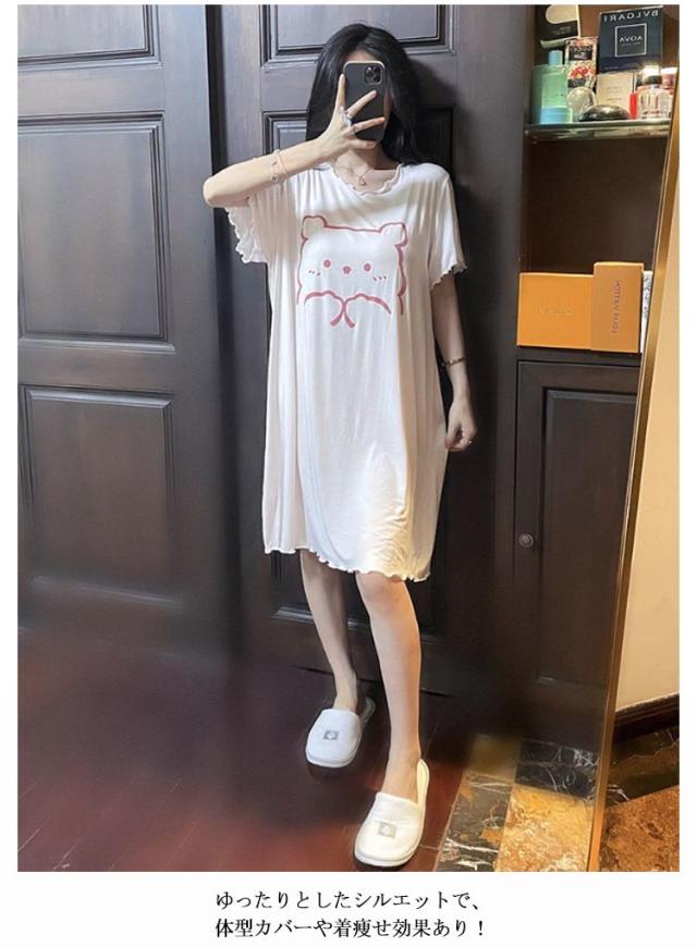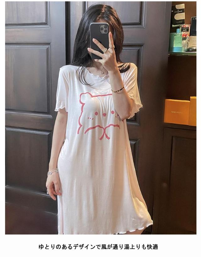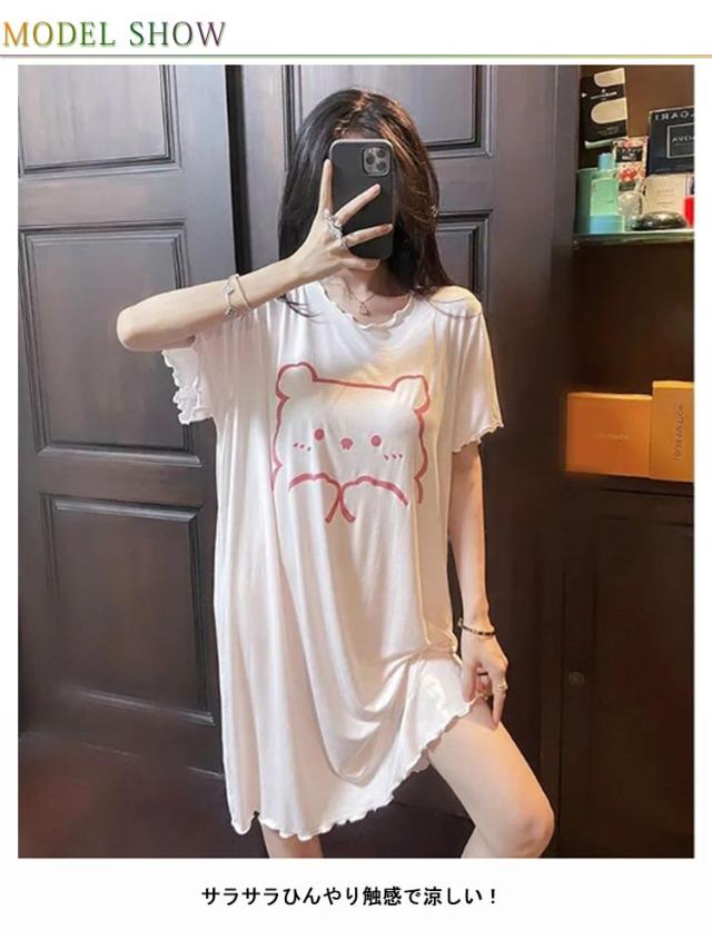 接触冷感 半袖 ナイトウエア レディース リラックス パジャマ ワンピースパジャマ 涼しい 部屋着 無地 ひんやり 体型カバー かわいい さらっと涼しい 冷感 かわいい 伸縮性 春夏 ぽっちゃり マタニティ ルームウエア 寝間着 涼しいパジャマ ゆったり シンプル