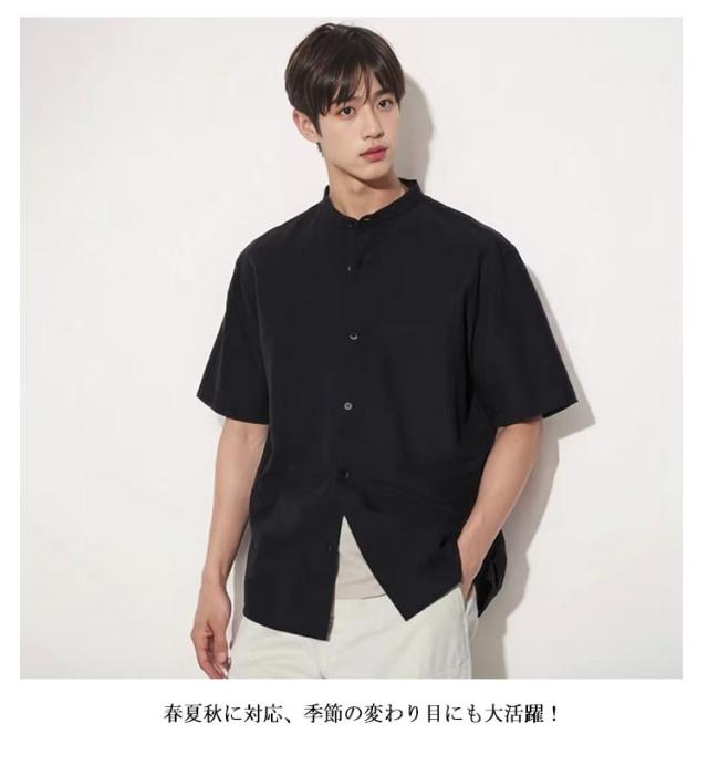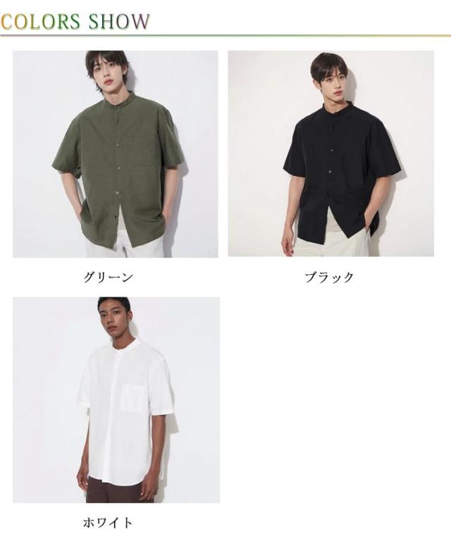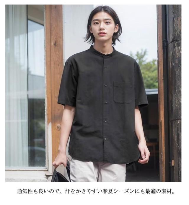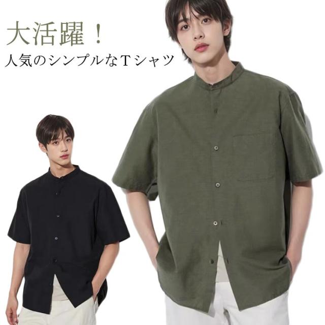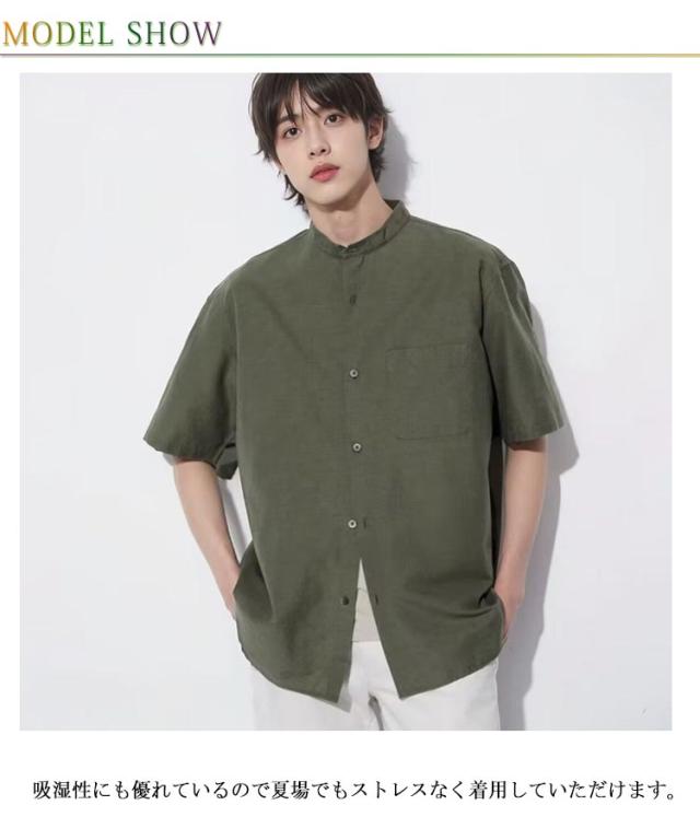麻 立ち襟 夏 リネンシャツ 通勤 シャツ 綿麻シャツ 半袖 M シャツ メンズ カジュアル 男性用 お兄系 無地 夏用 ヘンリーネック 通学 ブラック ホワイト グリーン リネン L XL 2XL