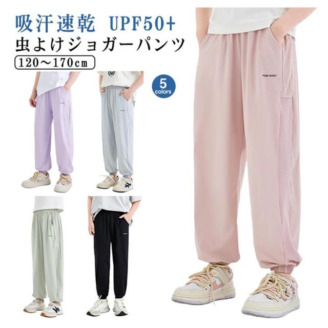 キッズ 小学生 無地 ロングパンツ UVカット ロングパンツ 男の子 防蚊 夏 涼しい UPF50+ ひんやり 速乾 虫よけ ジャージ 防虫ウェア 子供服 ストレッチ ジュニア 長ズボン 薄手 通気 ジョガーパンツ ゆったり アウトドア 林間学校 120 130 140 150 160