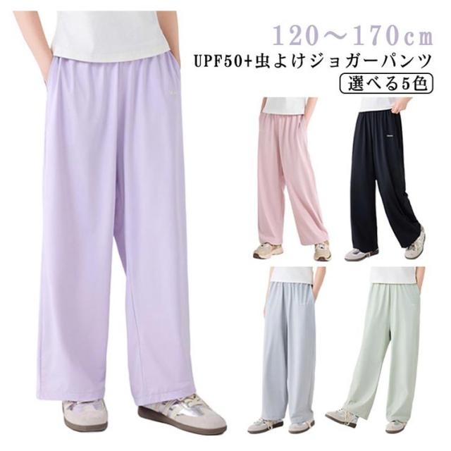 UPF50+ キッズ 130 ウエスト ジョガーパンツ 女の子 男の子 UVカット ロングパンツ ジュニア ジャージ 長ズボン 夏 無地 ゆったり 無地 ハイウエスト ルームウェア 薄手 ジャージ 薄手 アウトドア 林間学校 日焼け止め 虫刺され対策 120 夏 140 150 160