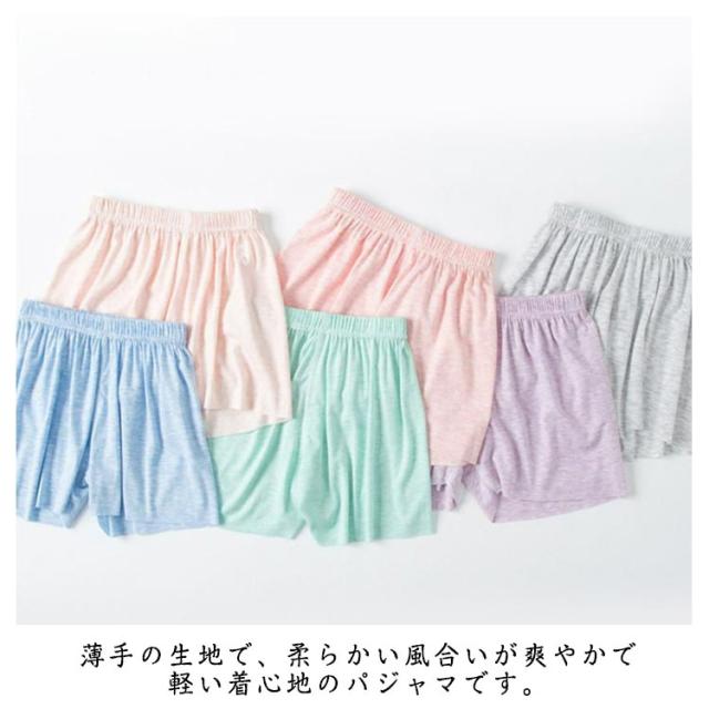 | ルームパンツ ショート丈 肌に優しい 通気性が抜群 薄手の生地で、柔らかい風合いが爽やかで軽い着心地のパジャマです。 肌に直接触れるものだから、安心の素材でつくりました。 ウエストゴムなので、着脱楽ちん。 弾力性は優れています。窮屈感がなくて、子供たちは思い切りに動きまわっても安心です。 | |
