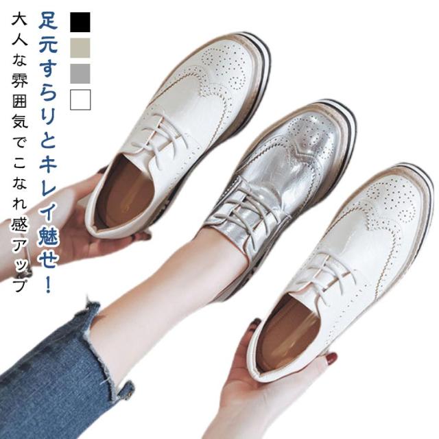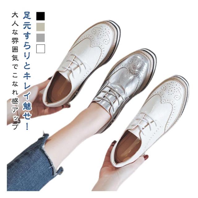 | 【足元すらりとキレイ魅せ!】 履くだけで身長がアップ!足元もおしゃれにキマる「厚底ローファー」が新登場。 厚底アウトソールに加え、ちょこっと高さを出したインソールで身長が伸びた気分☆ 紐の結び具合で多少のサイズ調節が可能。シューズと足が一体化するような着用感。 しっかりとした厚みで、足裏にかかる衝撃を吸収。前後差を抑えた形状なので、疲れも軽減◎ 【大人な雰囲気でこなれ感アップ】 ツヤのあるPU素材にウィングチップがポイント。カジュアル感を抑え、色んなコーデにマッチ。 【お気に入りを選べるカラー】 やアクセントになるメタリックカラー。なりたいイメージに合わせてチョイス 色々なコーデに活躍してくれるアイテムなので、1足あるだけで素敵なコーデが完成♪ | |