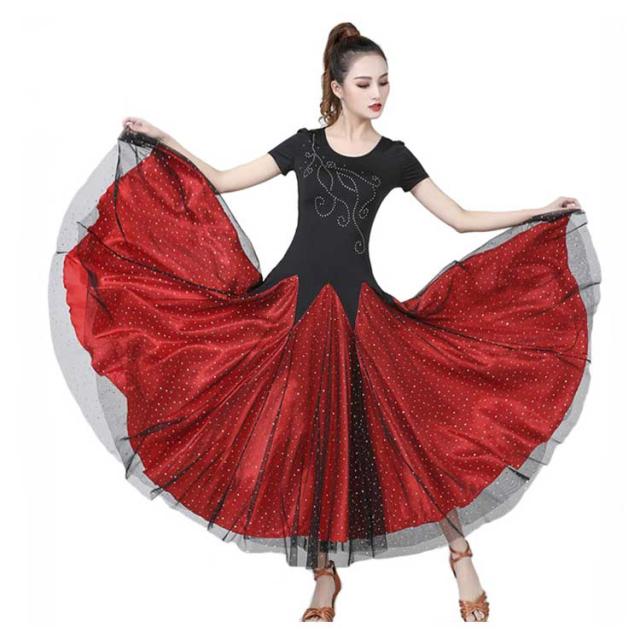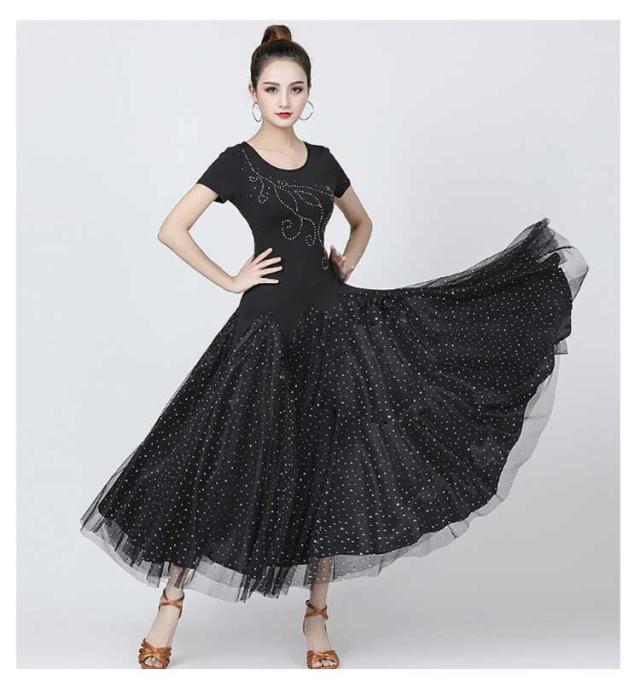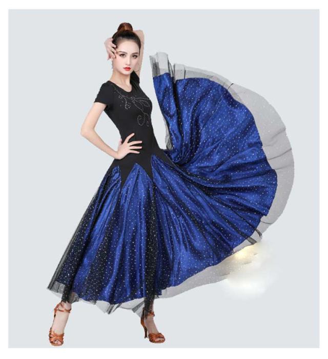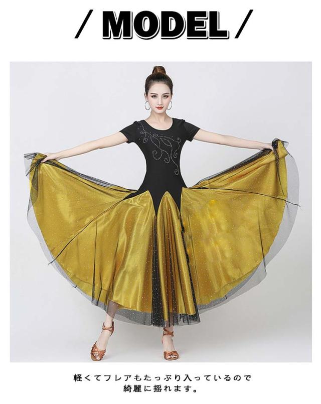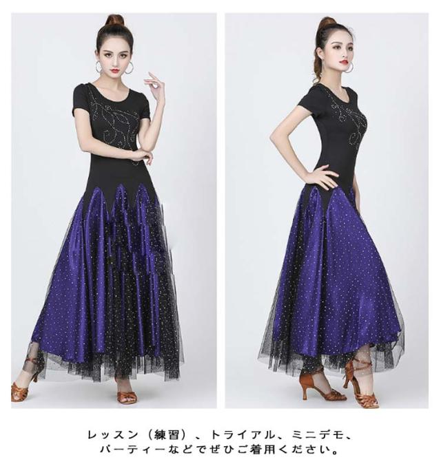 | 着た時・歩いた時のシルエットがとても美しい。 軽くてフレアもたっぷり入っているので綺麗に揺れます。 ストレッチ素材で動きやすく、練習等におすすめのレディース社交ダンスウェアです デザインが上品で、工芸が細かくて、本当の上品です。 社交ダンス衣装として、またステージ衣装として、華やかさを演出できる魅力的な衣装です。 タンゴ、ワルツ、などのスタンダード、サンバ、ルンバなどのラテン、モダン、フラメンコなどにもご使用いただけますので、大変重宝すると思います。 レッスン(練習)、トライアル、ミニデモ、パーティーなどでぜひご着用ください。 | |