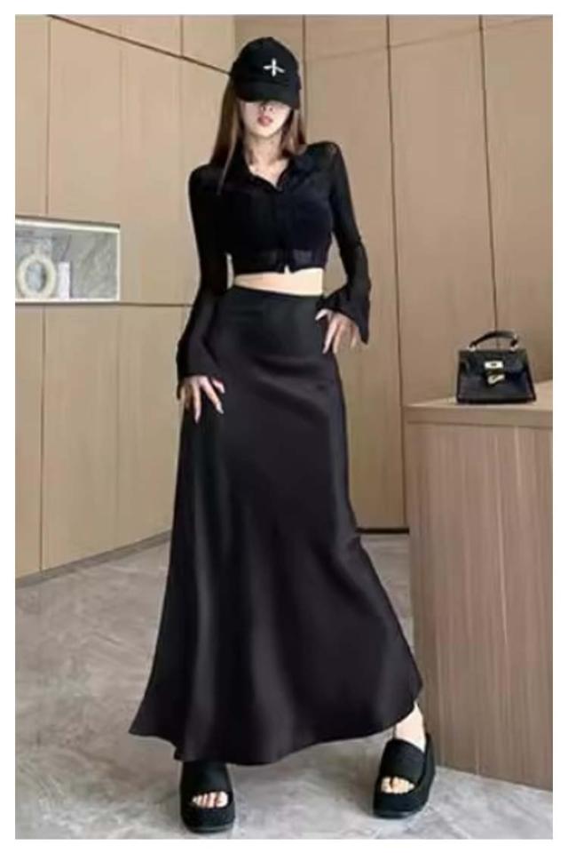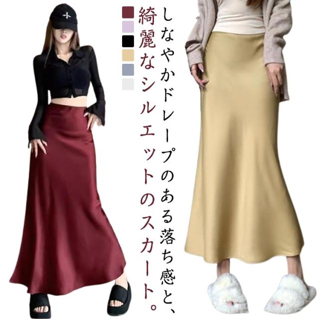 夏 スカート マーメイドスカート 低身長 サテン ロングスカート フレアスカート バックゴム オフィスカジュアル 通勤 スカート セレモニー 大人オフィス 通勤 きれいめ 女の子 夏