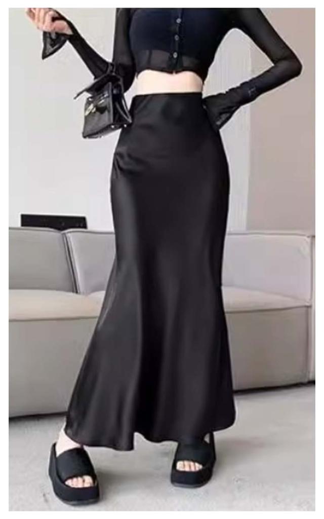| しなやかドレープのある落ち感と、綺麗なシルエットのスカート。 すっきりとしたウエストラインやヒップ下から広がる美しいマーメイドシルエットで、エレガントな印象の一着。 | |