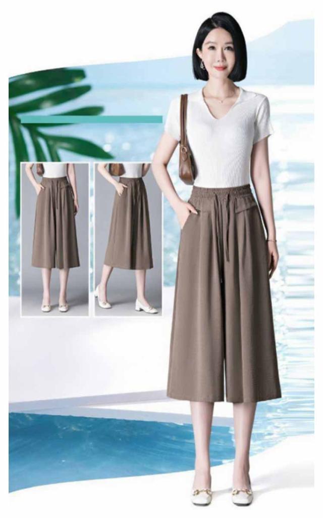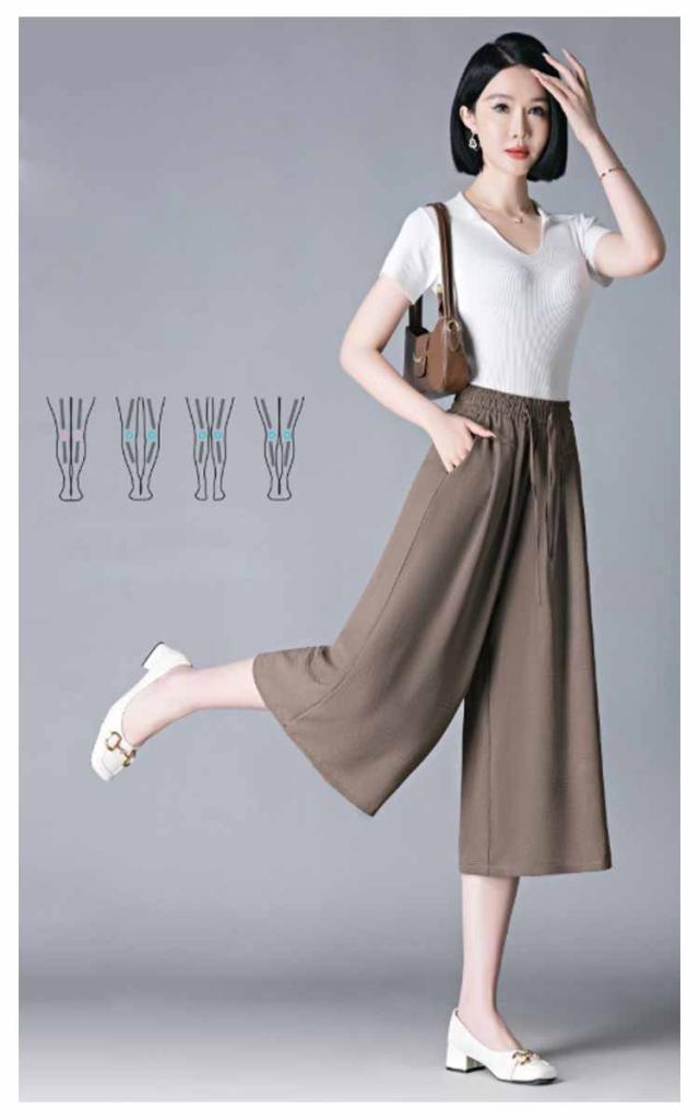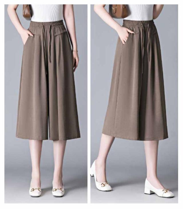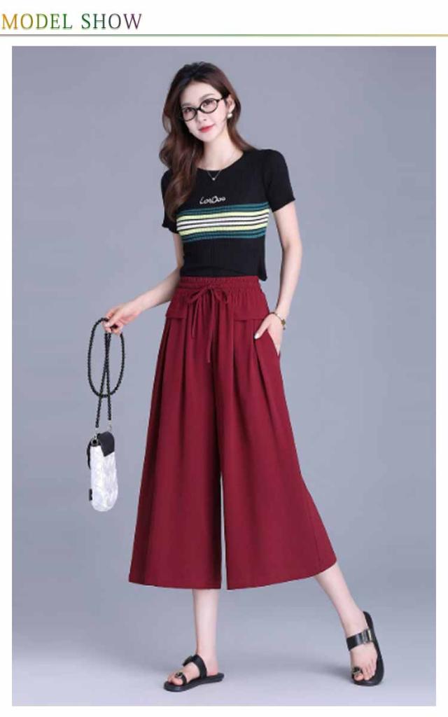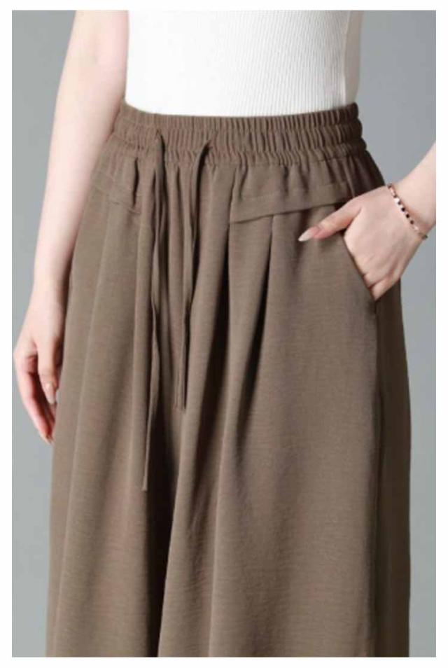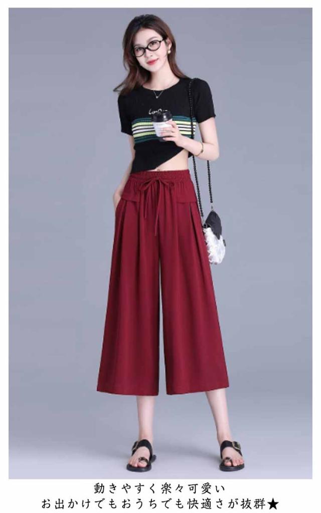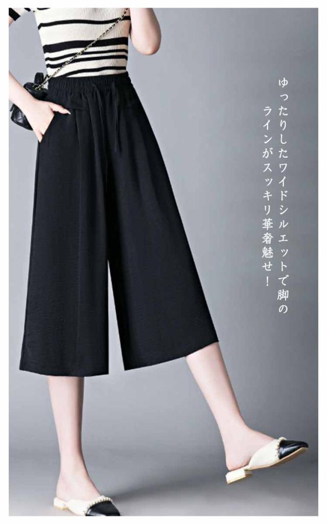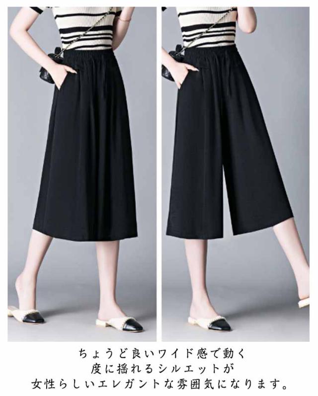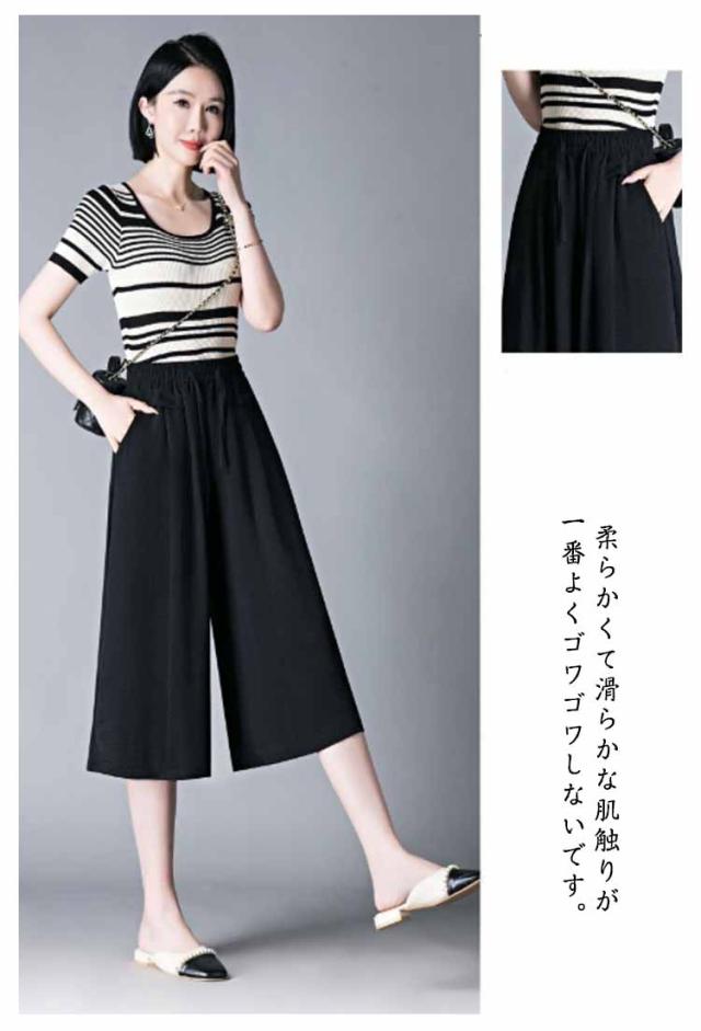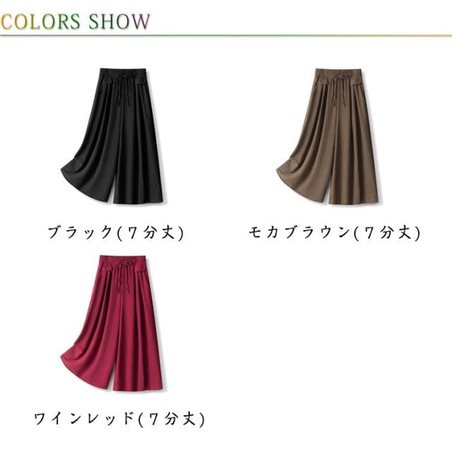 ボトムス 薄手 レディース 冷感 脚長 七分丈 ハイウエスト 春夏 ガウチョパンツ 柔らかい 通気 大人 ワイドパンツ ゆったり 着痩せ 七分丈 お出かけ