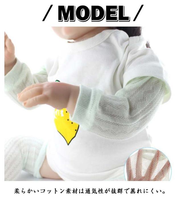 | お得な3ペアセット、新生児から使えるお洒落なアームカバー 柔らかいコットン素材は通気性が抜群で蒸れにくい。 夏は冷房対策や日焼けなどいろんなシーンで活躍してくれるから重宝します。 伸縮性抜群で動きやすく、窮屈感なく、ストレスフリー。 腕だけでなく、脚にも使えます。 | |