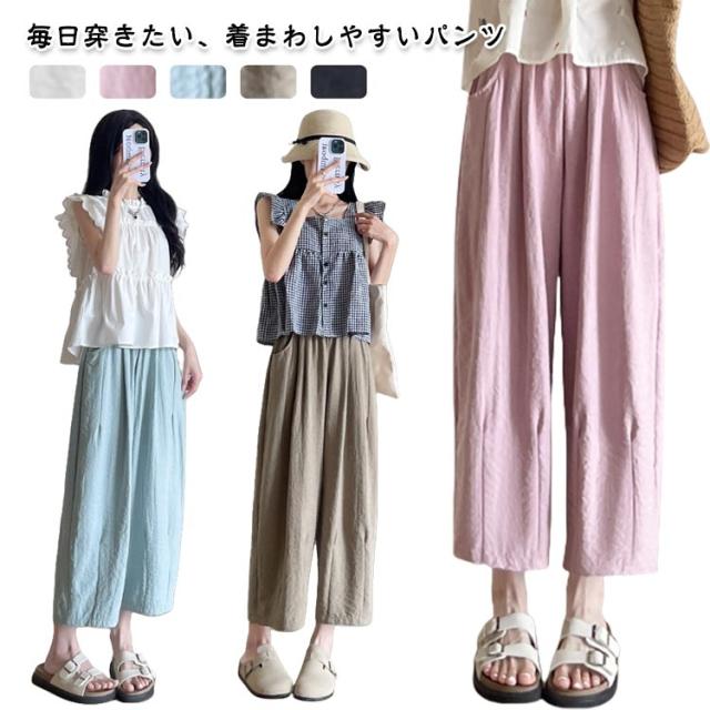 薄手 ワイドパンツ バルーンパンツ 春夏 冷感パンツ サーカスパンツ パンツ バルーンパンツ レディース 可愛い 九分丈 ワイド コクーンパンツ 大きいサイズ ウエストゴム 体型カバー イージーパンツ バレルパンツ タックパンツ ボトムス