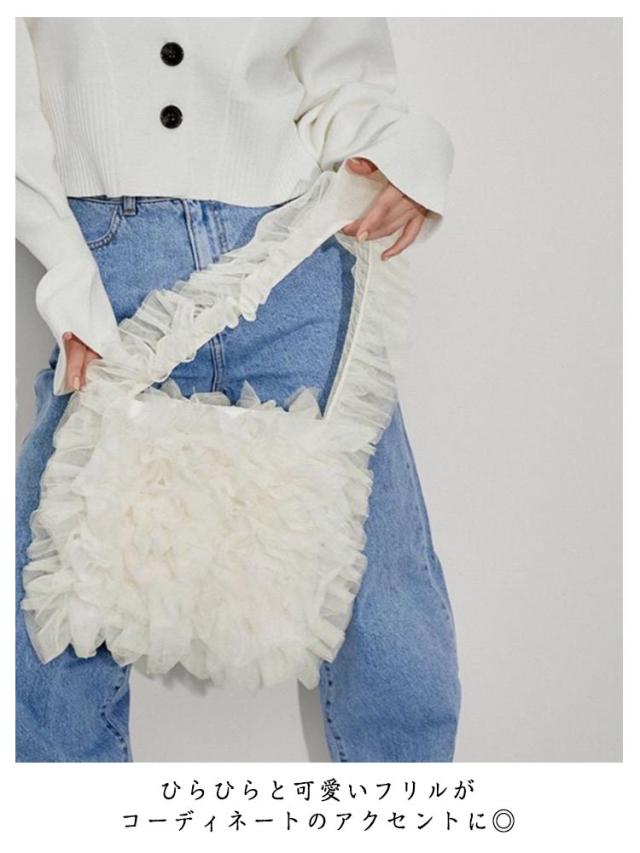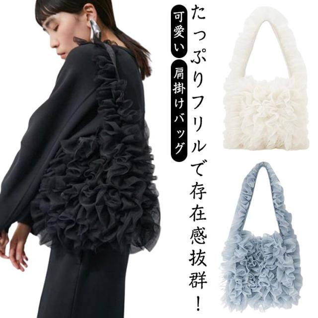 レディース トートバッグ ミニトート 肩掛けバッグ トートフリルバッグ チュールバッグ フリル ハンドバッグ くしゅくしゅ 可愛い 韓国ファッション フリルが可愛い チュール フリルバッグ