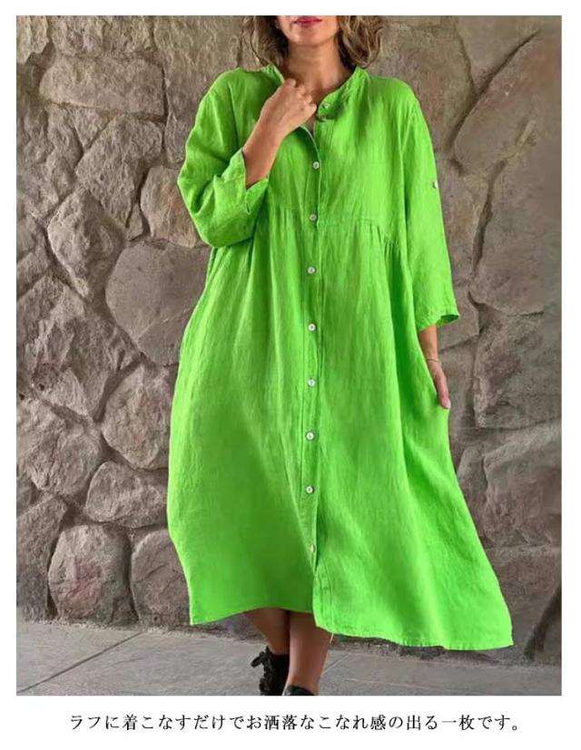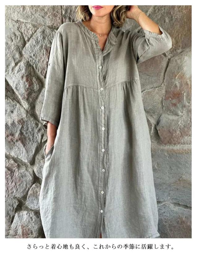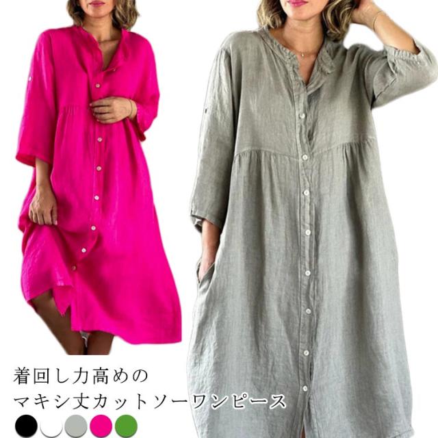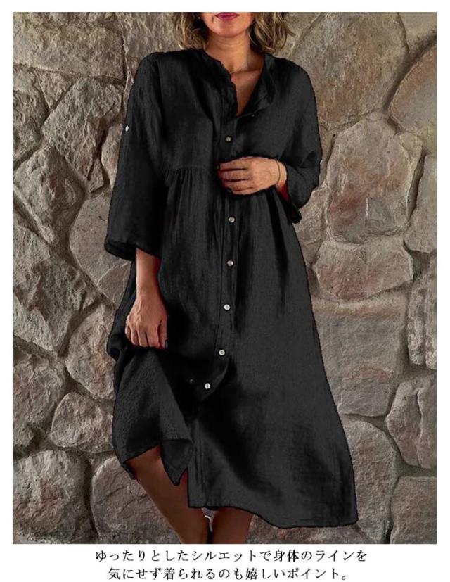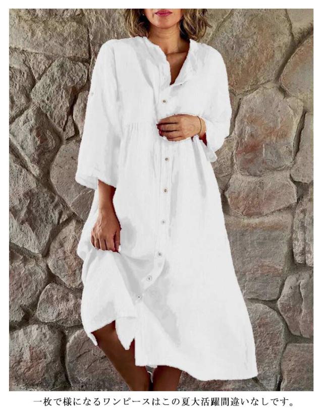 ワンピース ワンピ ナチュラル ロングワンピ シャツワンピース 半袖 無地 夏 ミモレ丈 Aライン サマーワンピース シンプル 大人 可愛い ワンピース きれいめ