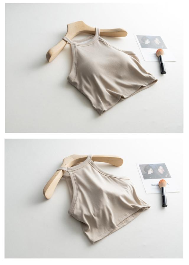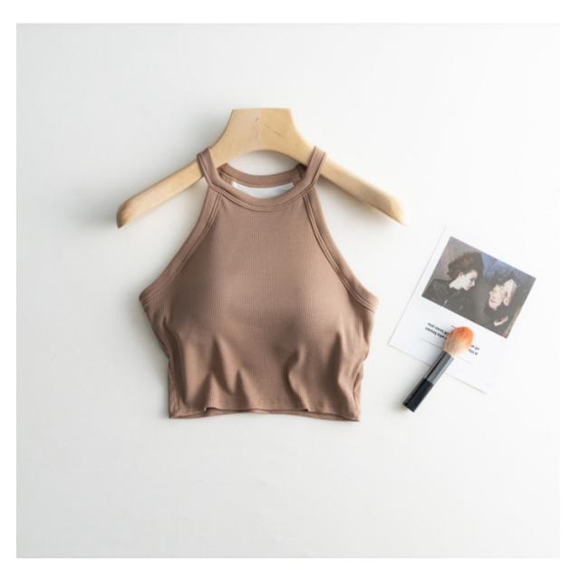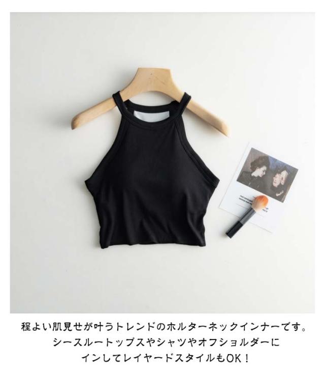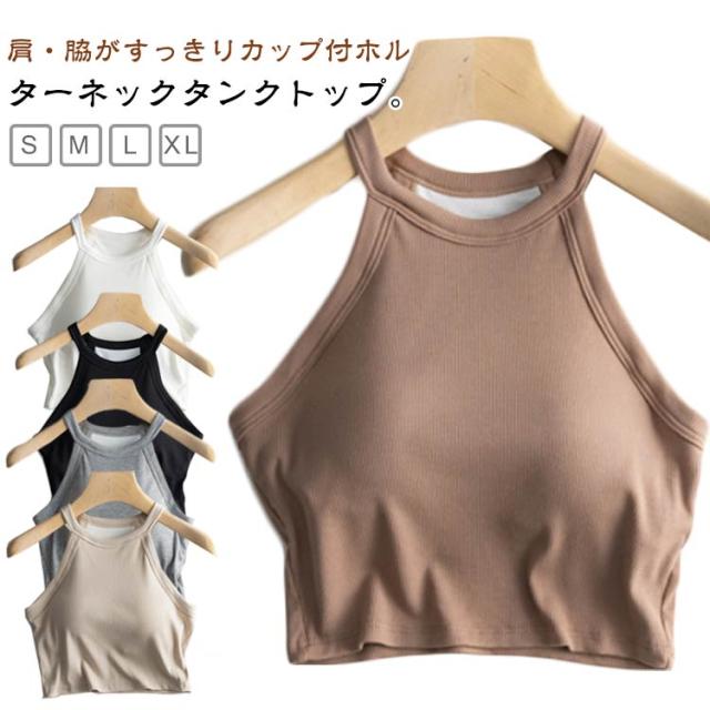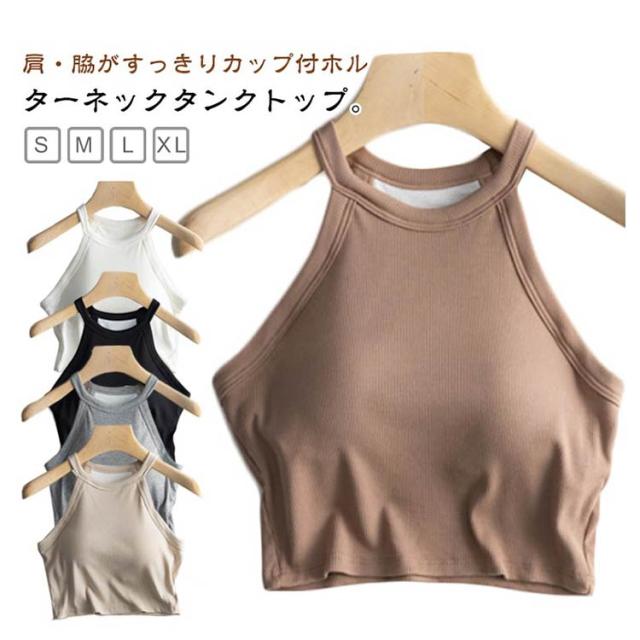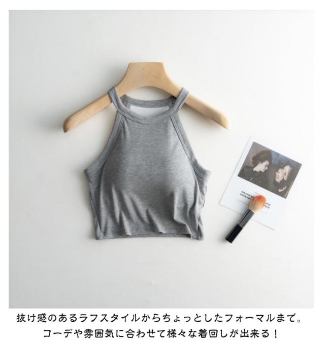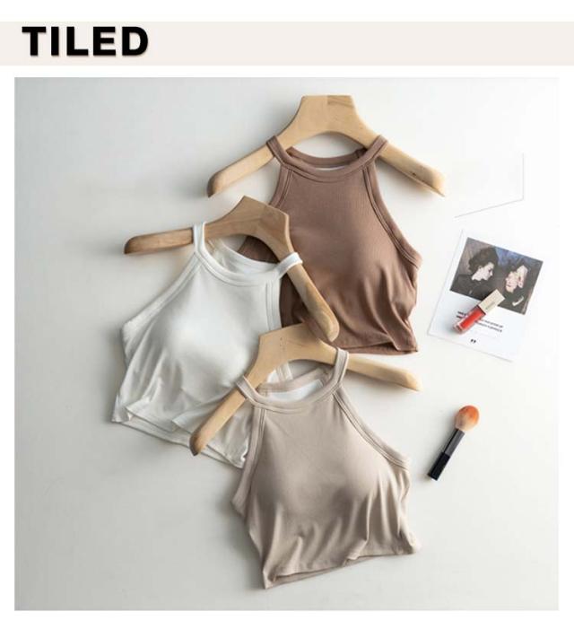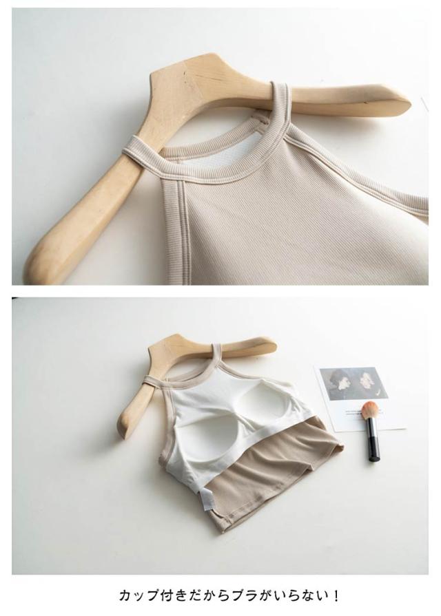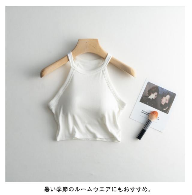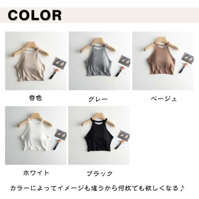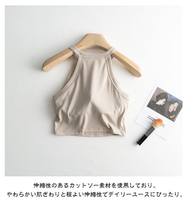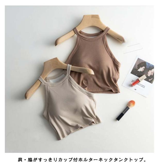 タンクトップ カップ付き 軽量 ショート丈 トップス 無袖 重ね着 ホルターネックブラ キャミソール インナー 無地 夏 シンプル ホルターネック 通気性 レディース レイヤード おしゃれ 肌着 お洒落 カットソー ブラウン
