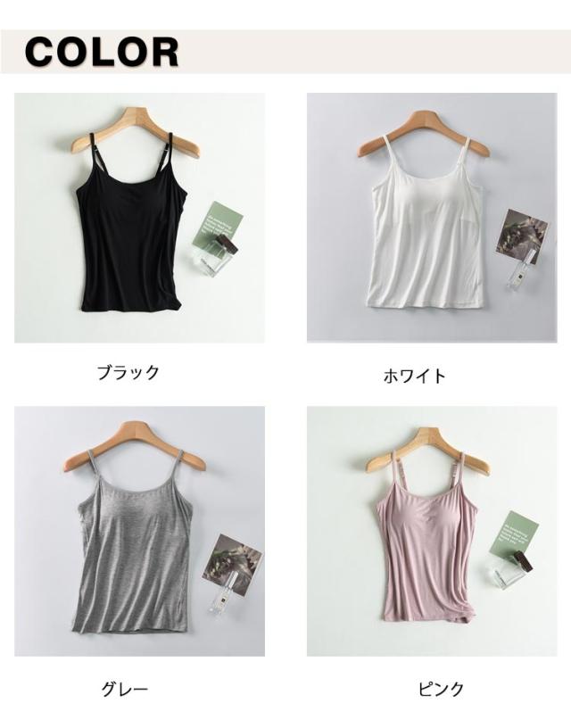 レディース タンクトップ インナー カップ付き キャミソール 夏 キャミソール ヨガ ノースリーブ カットソー トップス 重ね着 クルーネック レイヤード 着回し 無地 シンプル 肌着 おしゃれ スポーツウェア ランニング ヨガ