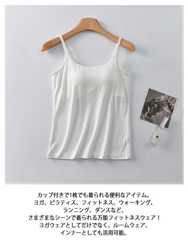 | カップ付きなのでそのままさらっと着れるタンクトップです。 気分に合わせて選べる7色展開のパッド付きキャミソールです。 ふっくら柔らかく、しっかりとしたカップ入りで美胸をキープします。 アンダーウェアとしてはもちろん、レイヤードコーデの見せインナーとしてもオススメ。 窮屈感なくストレスフリーな着心地も嬉しいポイントです。 カップ付きで1枚でも着られる便利なアイテム。ヨガ、ピラティス、フィットネス、ウォーキング、ランニング、ダンスなど、さまざまなシーンで着られる万能フィットネスウェア!ヨガウェアとしてだけでなく、ルームウェア、インナーとしても活用可能。 | |