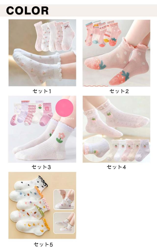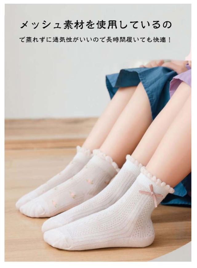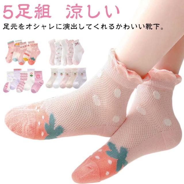 子供靴下 メッシュ靴下 靴下 ソックス 女の子 入園 5足組 子供用 ソックス ジュニア 夏用 子供 可愛い くつした クルーソックス おしゃれ 5足組 かわいい 薄手 涼しい 夏 小学生 入学 いちご柄 保育園 幼稚園 通園 通学 プレゼント