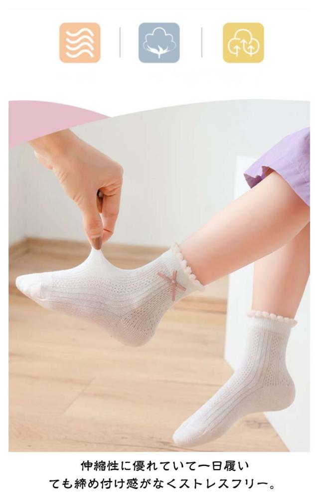 | 足元をオシャレに演出してくれるかわいい靴下。 メッシュ素材を使用しているので蒸れずに通気性がいいので長時間履いても快適! 薄手で柔らかい生地だから素足のような軽やかなはき心地を実現。 伸縮性に優れていて一日履いても締め付け感がなくストレスフリー。 選べる5色のカラーベース&プチプライスが嬉しいですね☆ 普段着としておしゃれコーデにはもちろん、バレエやダンス、パーティードレス、結婚式、発表会、幼稚園や保育園のお遊戯会、劇などに。ハロウィンの仮装やコスプレなどイベント用にも♪ | |