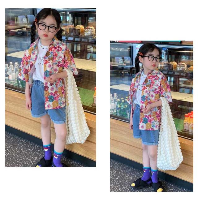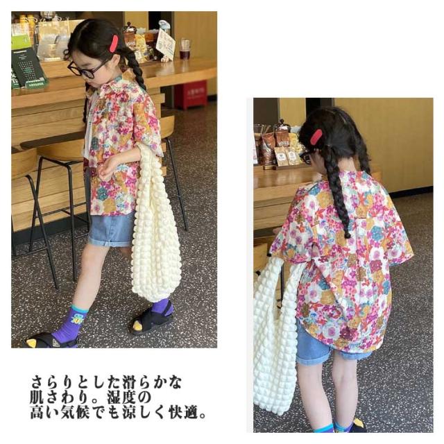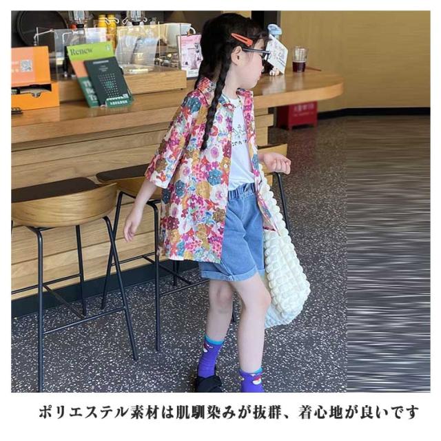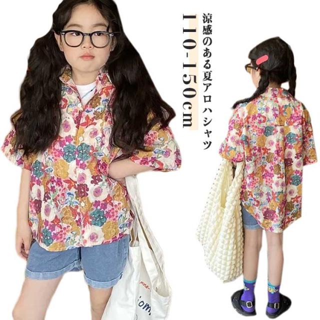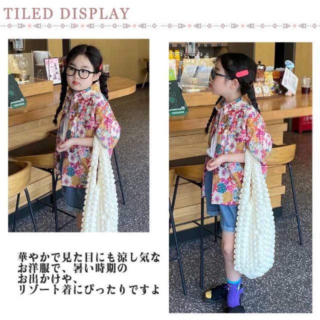 結婚式 半袖シャツ ジュニア トップス 子ども服 女の子 男の子 花柄シャツ キッズ 総柄シャツ カジュアルシャツ 夏服 リゾート アロハシャツ かわいい 夏物 おしゃれ 旅行 120cm ハワイ 110cm キッズ 130cm 140cm 150cm