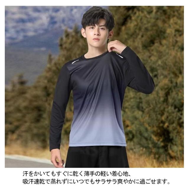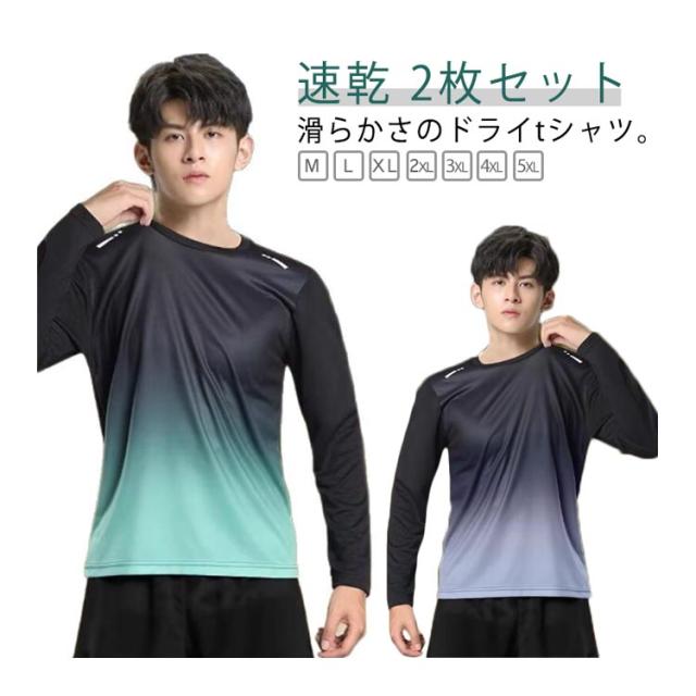 メンズ グラデーション 2枚セット 薄手 速乾 メンズ 長袖 2枚セット ロンt 秋 スポーツウェア 夏用 インナーシャツ tシャツ uvカット 長袖tシャツ ウォーキング 肌着 涼しい 吸汗速乾 UVカット 大きいサイズ ロンT