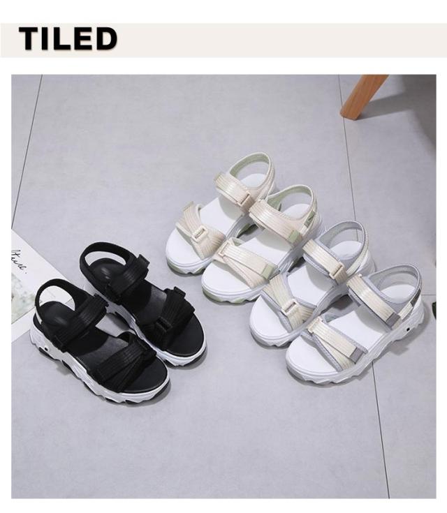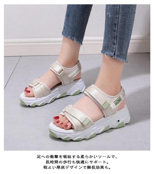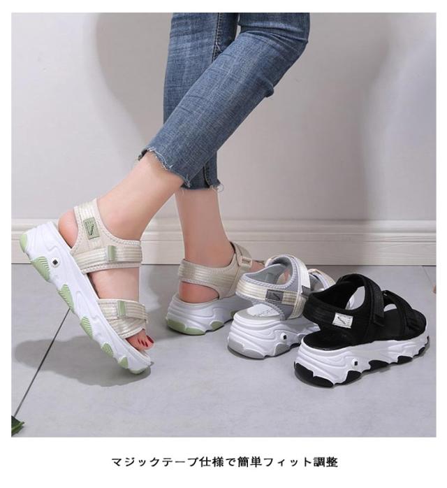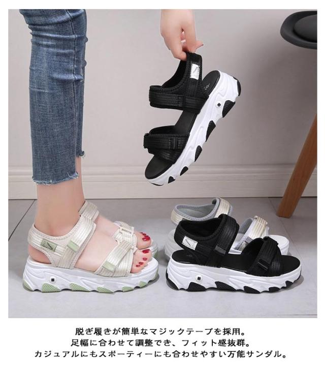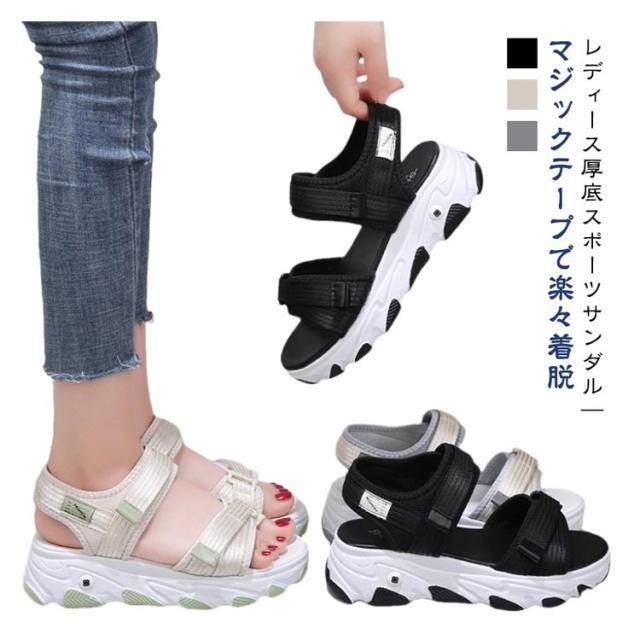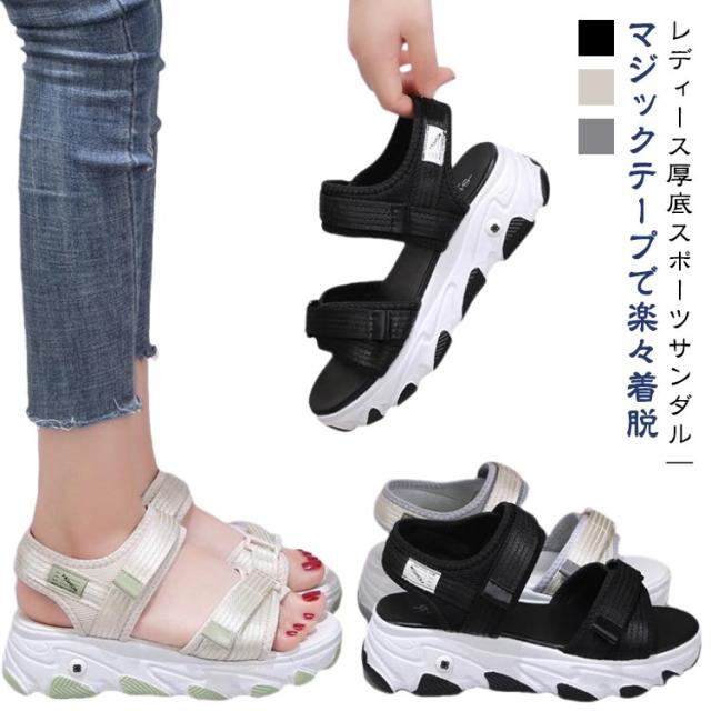 | レディース厚底スポーツサンダル|マジックテープで楽々着脱 春夏にぴったり!歩きやすくておしゃれ 足への衝撃を吸収する柔らかいソールで、長時間の歩行も快適にサポート。程よい厚底デザインで脚長効果も◎。 マジックテープ仕様で簡単フィット調整 脱ぎ履きが簡単なマジックテープを採用。足幅に合わせて調整でき、フィット感抜群。 カジュアルにもスポーティーにも合わせやすい万能サンダル。 | |