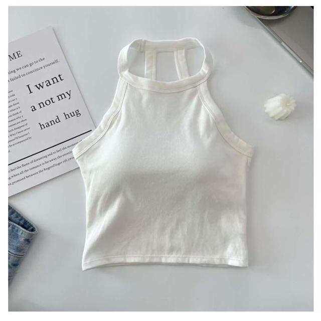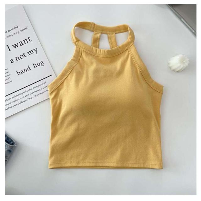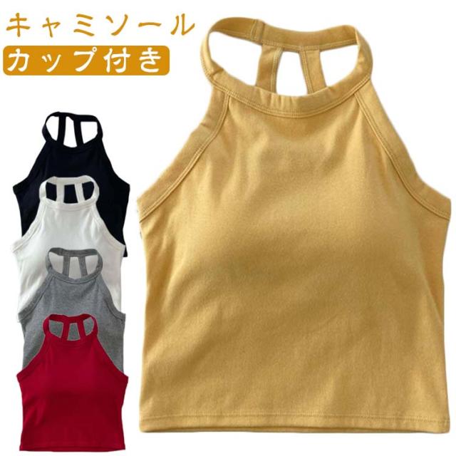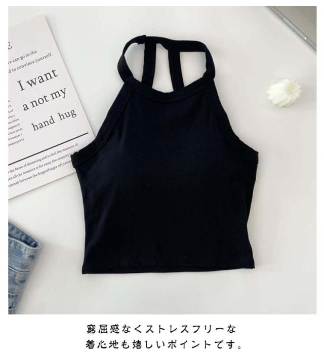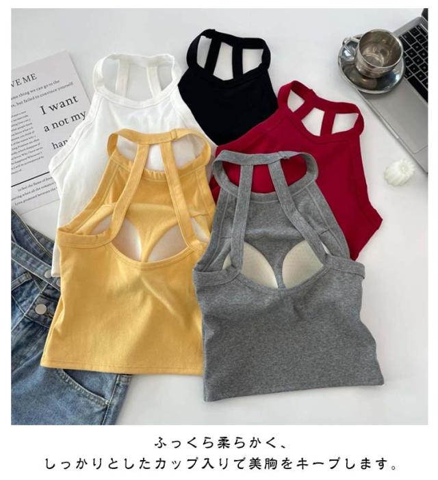 カップ付き ホルターネックブラ レディース カジュアル アンダーウェア ブラトップ トップス ホルターネック キャミソール ノンワイヤー ノースリーブ タンクトップ 春夏 ブラカップ 無地 カップ付き シンプル レイヤード 重ね着 おしゃれ カットソー ストレッチ 春