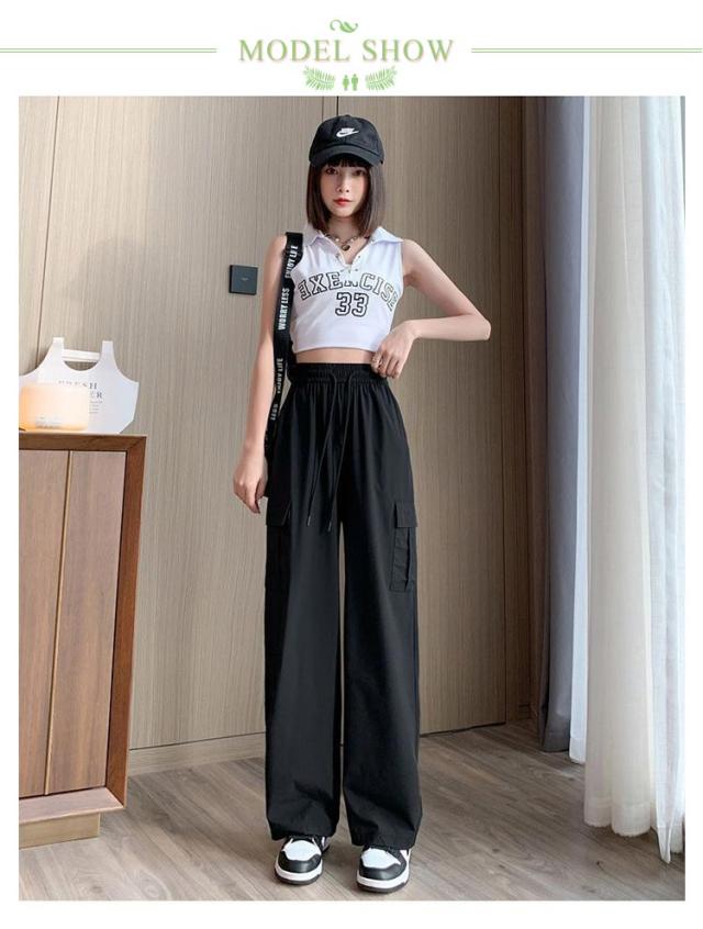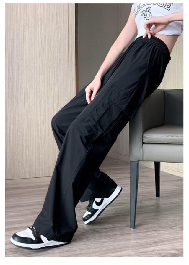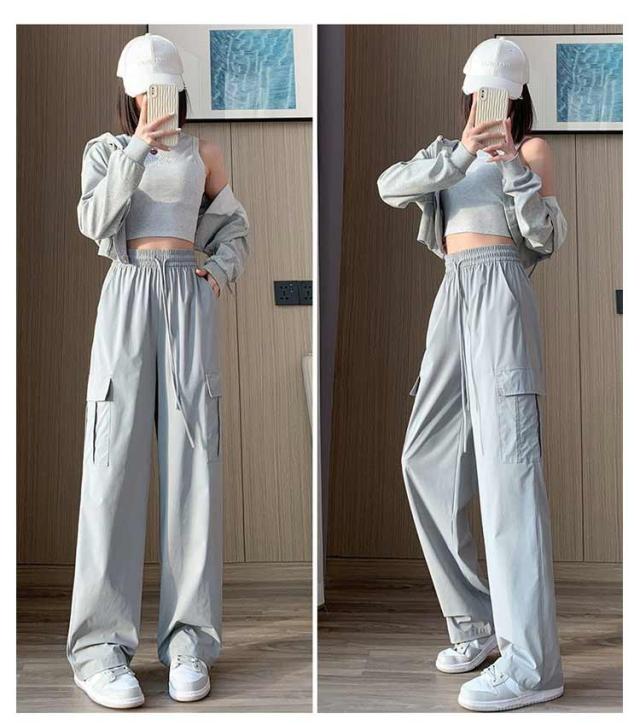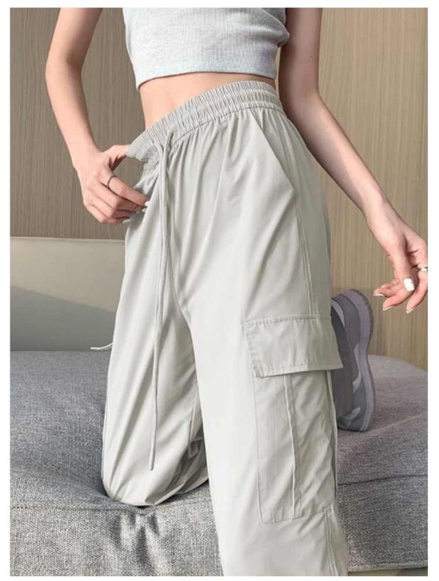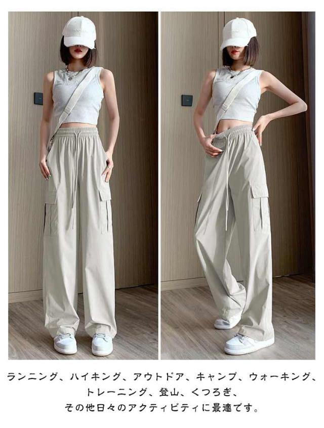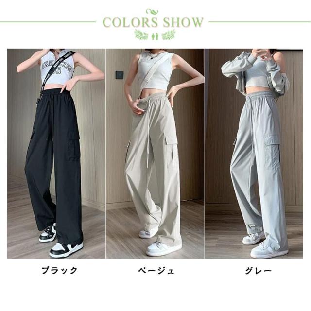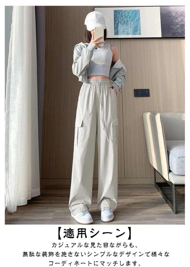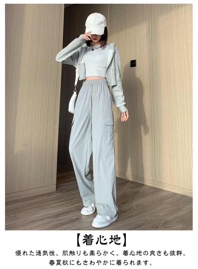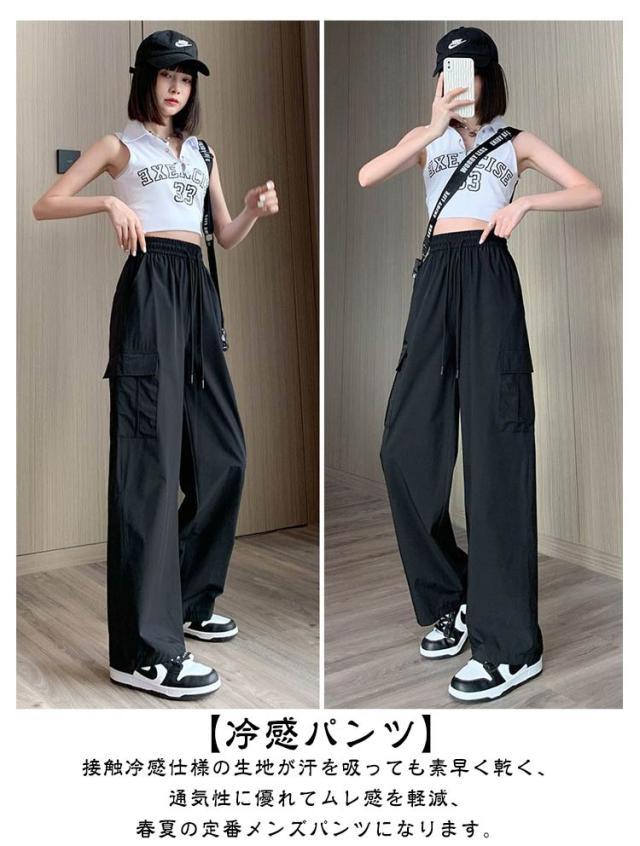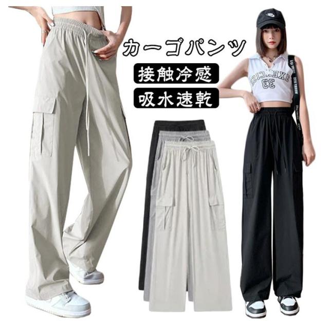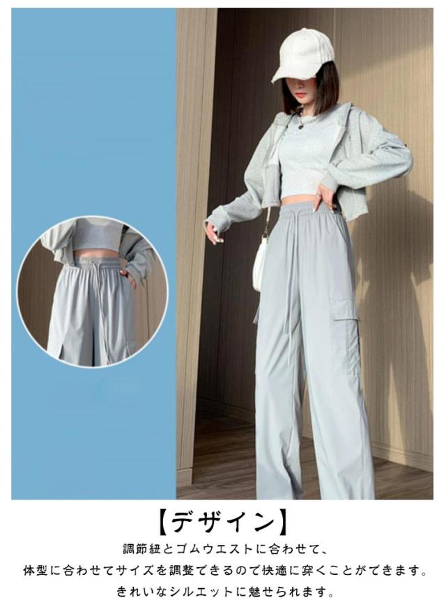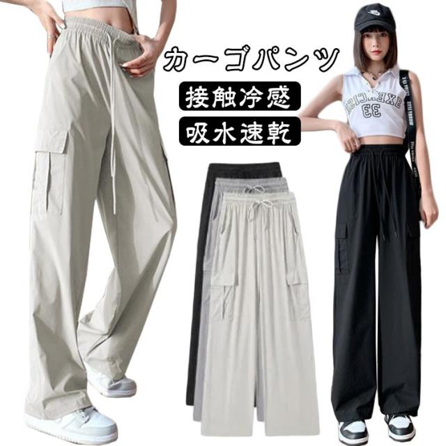 薄手 トレートパンツ カーゴパンツ 涼感 レディース ハイウエスト 作業ズボン 接触冷感 ワイドパンツ 夏 吸水速乾 レディース ひんやり アイスシルクパンツ 接触冷感 ストレッチ ゆったり 涼しい ロングパンツ カジュアル 快適 無地 uvカット