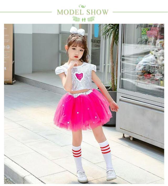 チアダンス トップス 140 スパンコール 女の子 衣装 110 上下セット 4点セット スパンコール キラキラ キッズ 舞台ステージ衣装 ダンス衣装 ガールズ 4点セット 120 130 チュチュスカート 150 160 子供服 キッズ ジュニア キッズ ジュニア 発表会 ダンス衣装 派手 舞台