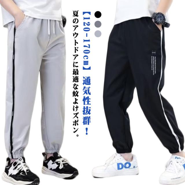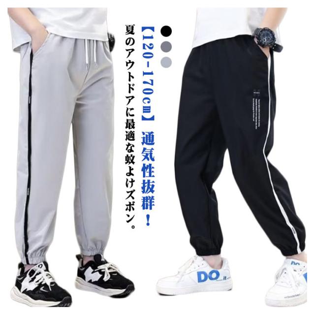 | 【120-170cm】 通気性抜群!夏のアウトドアに最適な蚊よけズボン。 接触冷感素材を使用した男の子用ジョガーパンツ。 ひんやり涼しい接触冷感なので、夏の大活躍は間違いなし! ウエスト部分は総ゴム仕様で動きやすく、着脱もラクラクです♪ 足裾にゴム付きのデザインで蚊の侵入が防がられ、子供の幼い肌をより良く守れるデザイン性と機能性兼ね備える一枚です。 ゆとりのあるシルエットとサラリとした素材による清涼感が快適な着心地を演出します。 | |