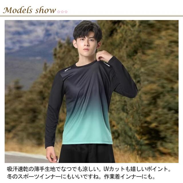 長袖 メンズ スポーツウェア tシャツ 2枚セット 薄手 速乾 ロンt メンズ 秋 夏用 長袖tシャツ インナーシャツ 2枚セット uvカット グラデーション ウォーキング 肌着 涼しい 吸汗速乾 UVカット 大きいサイズ ロンT