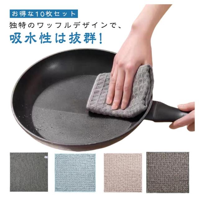 10枚セット 油汚れクロス 台所ふきん 30*30cm 食器拭き ワッフル生地 速乾 キッチンタオル ループなし 吸水 ふきん カウンタークロス キッチン キッチンクロス テーブルクロス 手拭き 台拭き タオル 綿 北欧 抗菌 10枚セット 防臭 食器拭き 布巾