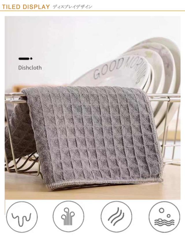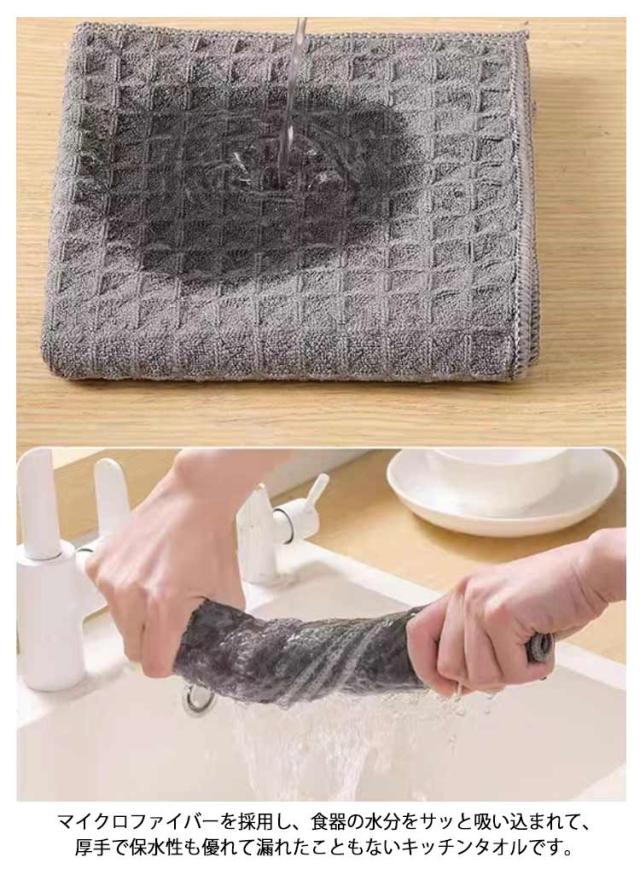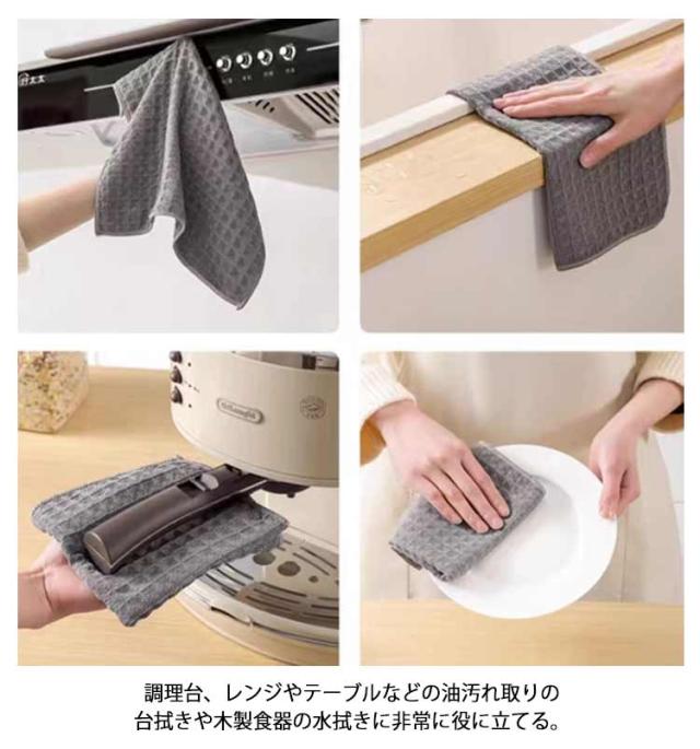 | 【お得な10枚セット】 独特のワッフルデザインで、 吸水性は抜群! マイクロファイバーを採用し、食器の水分をサッと吸い込まれて、厚手で保水性も優れて漏れたこともないキッチンタオルです。 また、交差織り技術のおかげで、通風性が良い室内で干すと翌朝に素早く乾く。 台拭き或いは食器拭きとしては最適なキッチンクロスです。 ふきん全面コットンのワッフル素材と無蛍光剤で安全性が備わっているので、長く使うことができます。 調理台、レンジやテーブルなどの油汚れ取りの台拭きや木製食器の水拭きに非常に役に立てる。 | |