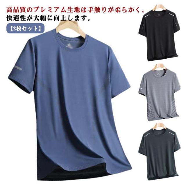 2枚セット 半袖 速乾 Tシャツ 夏 フィットネス メンズ スポーツ・アウトドア 登山 UVカット 涼感素材 水着 通気性 紫 体型カバー プール 涼感素材 おしゃれ 接触冷感 ストレッチ 涼しい ベンチレーション