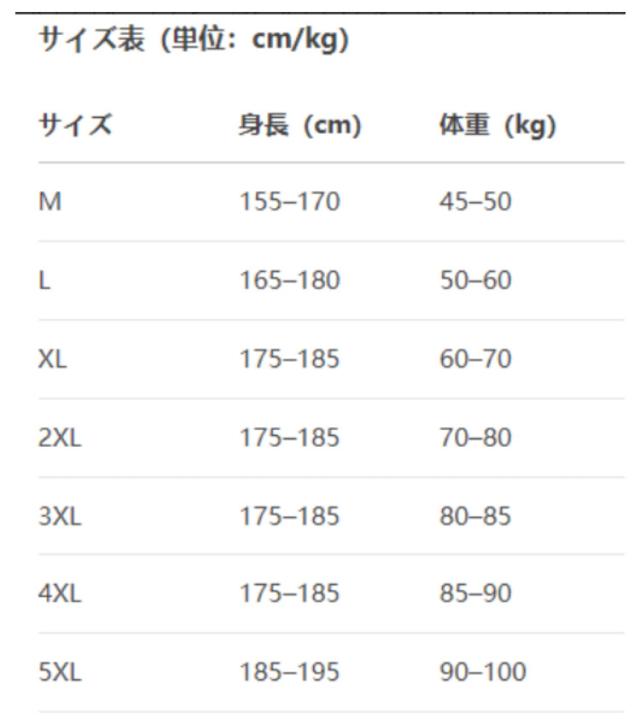 | サイズ | M L XL 2XL 3XL 4XL 5XL |