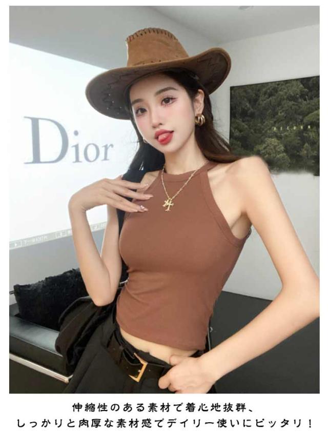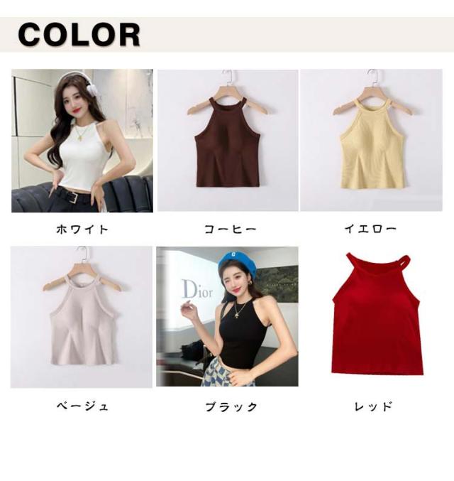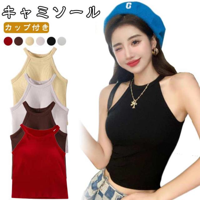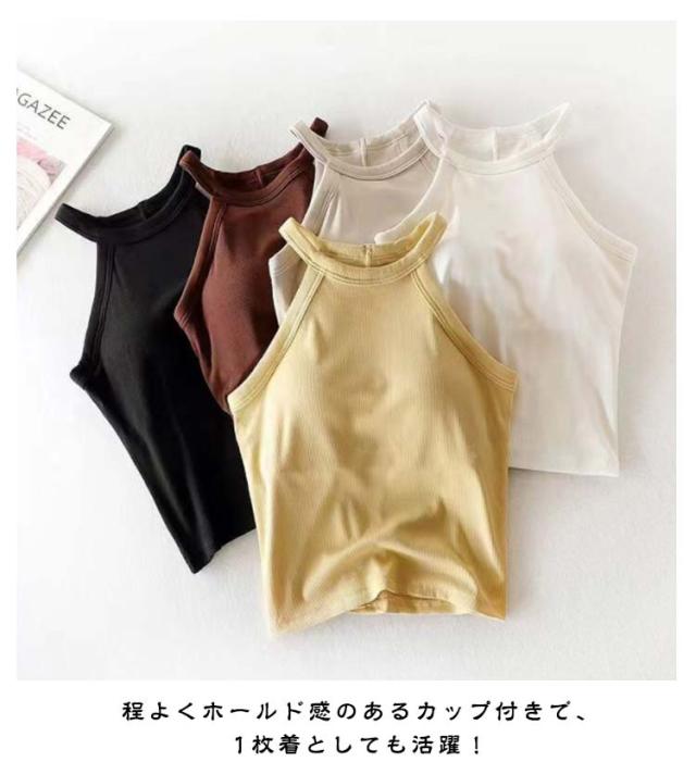 レディース 部屋着 タンクトップ リブ レイヤード カップ付き トップス カップ付き ブラカップ ホルターネック リブ生地 無地 春夏 おしゃれ ノースリーブ インナー キャミソール 重ね着 お洒落 シンプル ストレッチ性 リラックスウエア