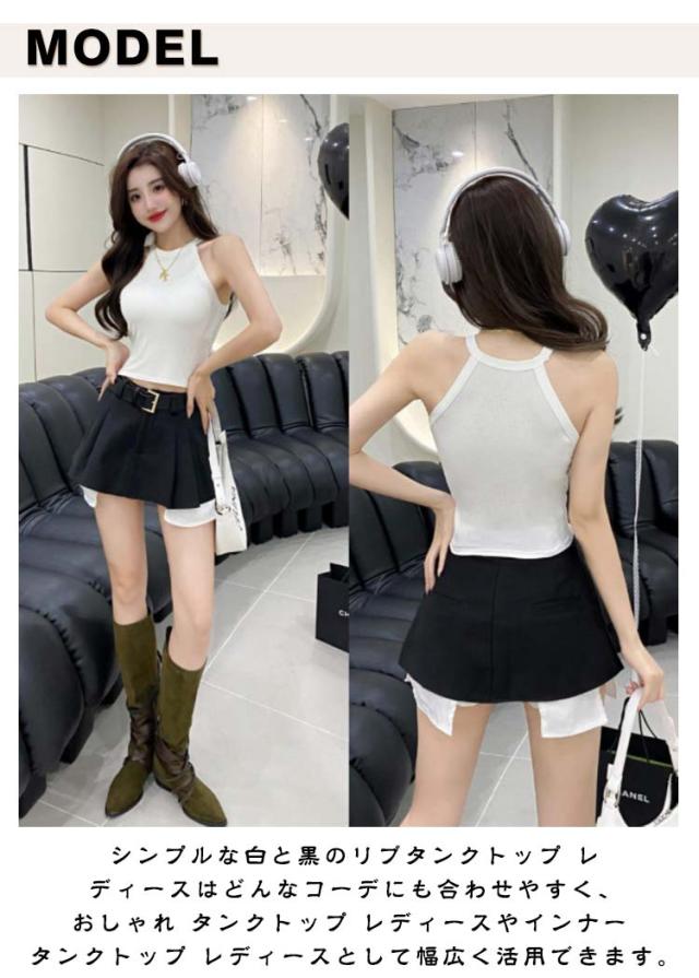 | 程よくホールド感のあるカップ付きで、1枚着としても活躍! ホルターネックデザインが女性らしい印象に・肩回りがすっきり見えるスリーブはトレンド感も 伸縮性のある素材で着心地抜群、しっかりと肉厚な素材感でデイリー使いにピッタリ! シンプルな白と黒のリブタンクトップ レディースはどんなコーデにも合わせやすく、おしゃれ タンクトップ レディースやインナー タンクトップ レディースとして幅広く活用できます。 デイリーのインナーにはもちろん、ダンスやヨガ、フィットネス用のインナーとしても幅広く活躍してくれます。 | |