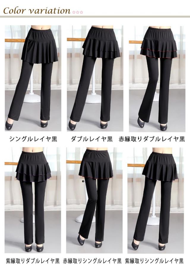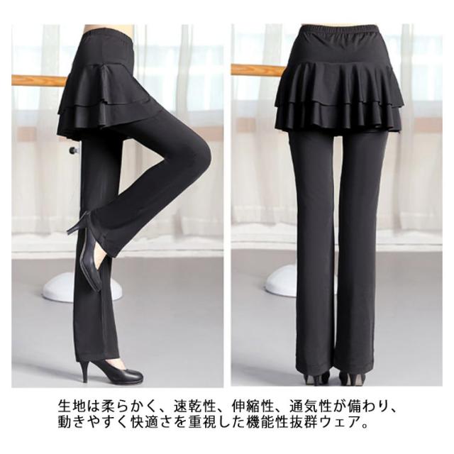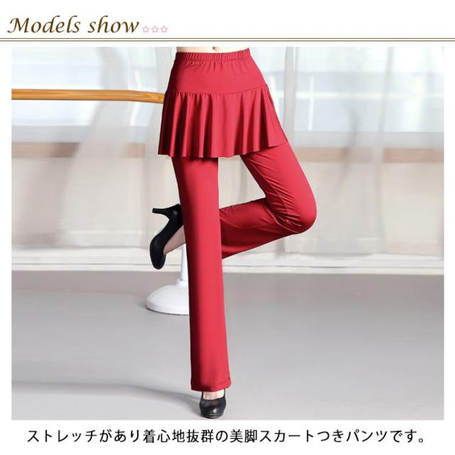 ジャージ ダンスパンツ ベリーダンス レディース スカート付き ダンスパンツ パンツ ミニスカート ダンスパンツ ヨガ ブーツカット ダンス衣装 フィットネス 美脚パンツ 社交ダンス ダンス 体型カバー 衣装 ヨガウェア ヨガパンツ レッスンパンツ レギンス