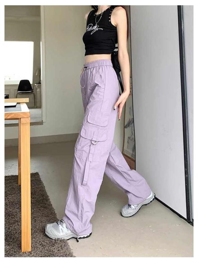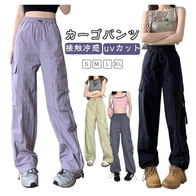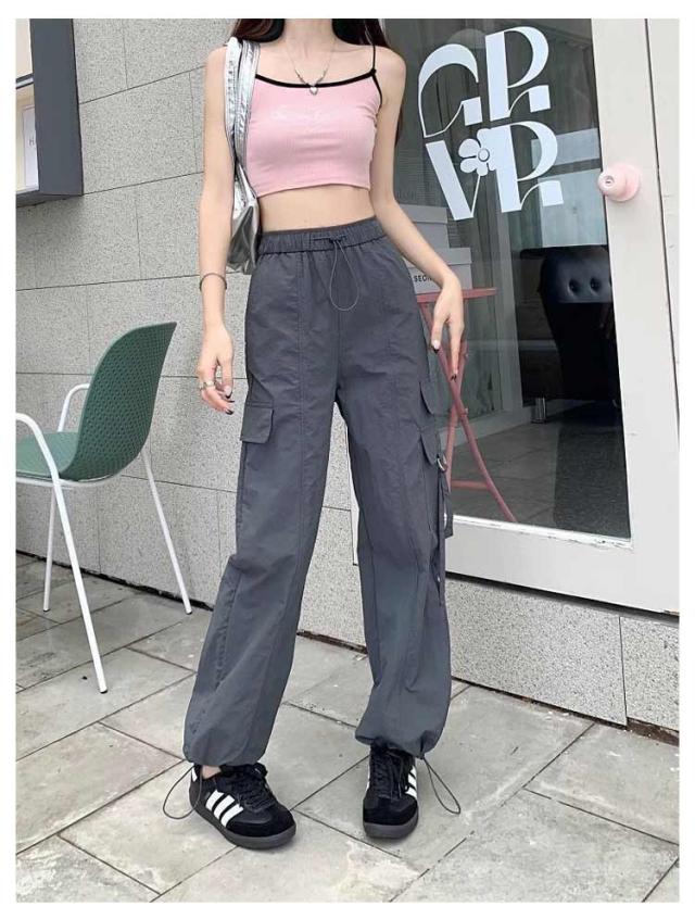 ポケット付き ロングパンツ ダンス用 カーゴパンツ ドローコード ハイウエスト ゆったり ワイドパンツ ワイドカーゴパンツ ワークパンツ ヒップホップ カーゴパンツ かっこいい ボトムス 春 夏 レディース 調節 作業着 ストリート トレンド カジュアル スポーツ