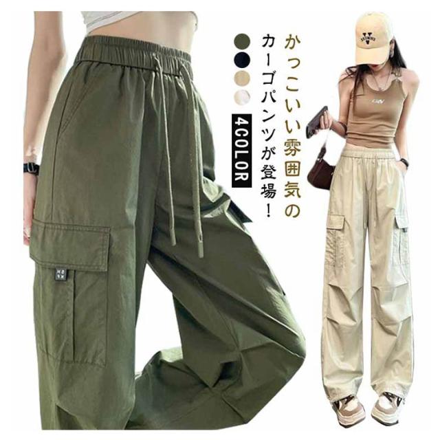 パンツ ロングパンツ レディース 接触冷感 ワイド カーゴパンツ ボトムス 作業ズボン ズボン 接触冷感 夏 春 カジュアル 速乾 秋 ゆったり 無地 ウエストゴム ダンス用 動きやすい 女性用 シンプル かっこいい uvカット 韓国ファッション
